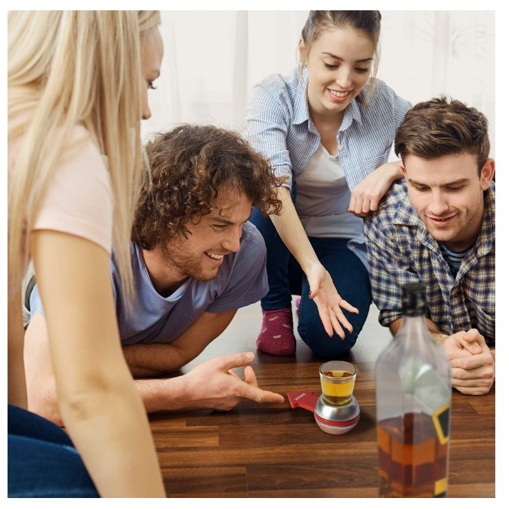 Regulile jocului sunt simple!Invartiti sageata ruletei si in functie de persoana indicata de varful sagetii, aceasta va fi cea care trebuie sa bea continutul paharului de shot, apoi se replaseaza paharul de shot in suportul special, si se roteste sageata. Persoana in dreptul careia se opreste sageata trebuie sa bea un pahar, iar apoi sa invarta din nou si tot asa.