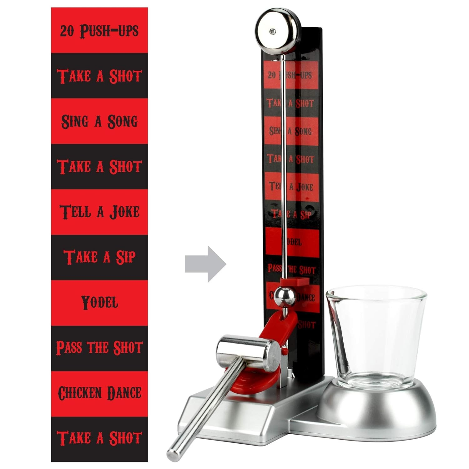 Materiale de înaltă calitate: Produs din sticlă, plastic și fier de calitate, acest joc este durabil și rezistent. Paharul Shot Flippy și ciocănelul Hammershot sunt construite pentru a rezista utilizării repetate, asigurând distracție pe termen lung.