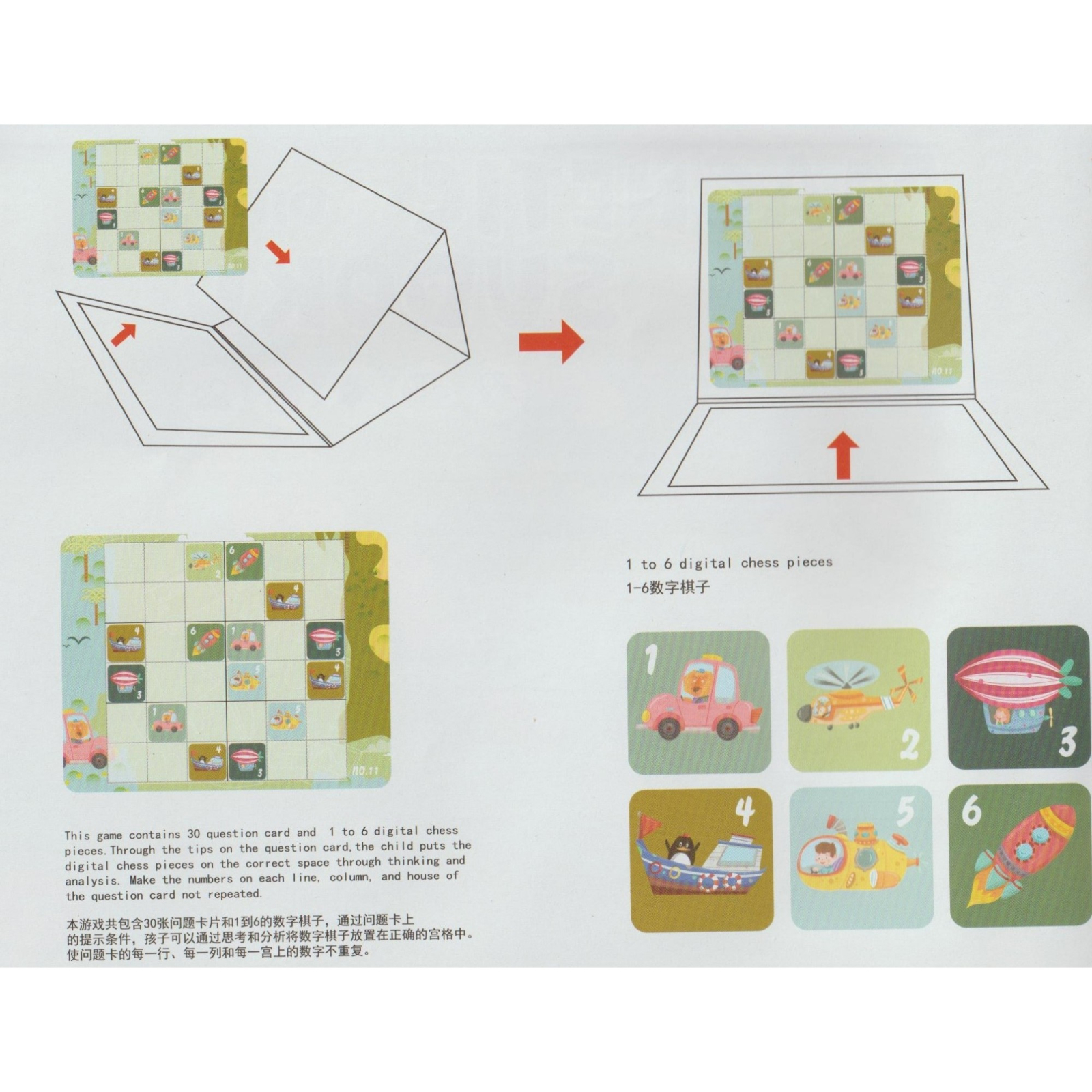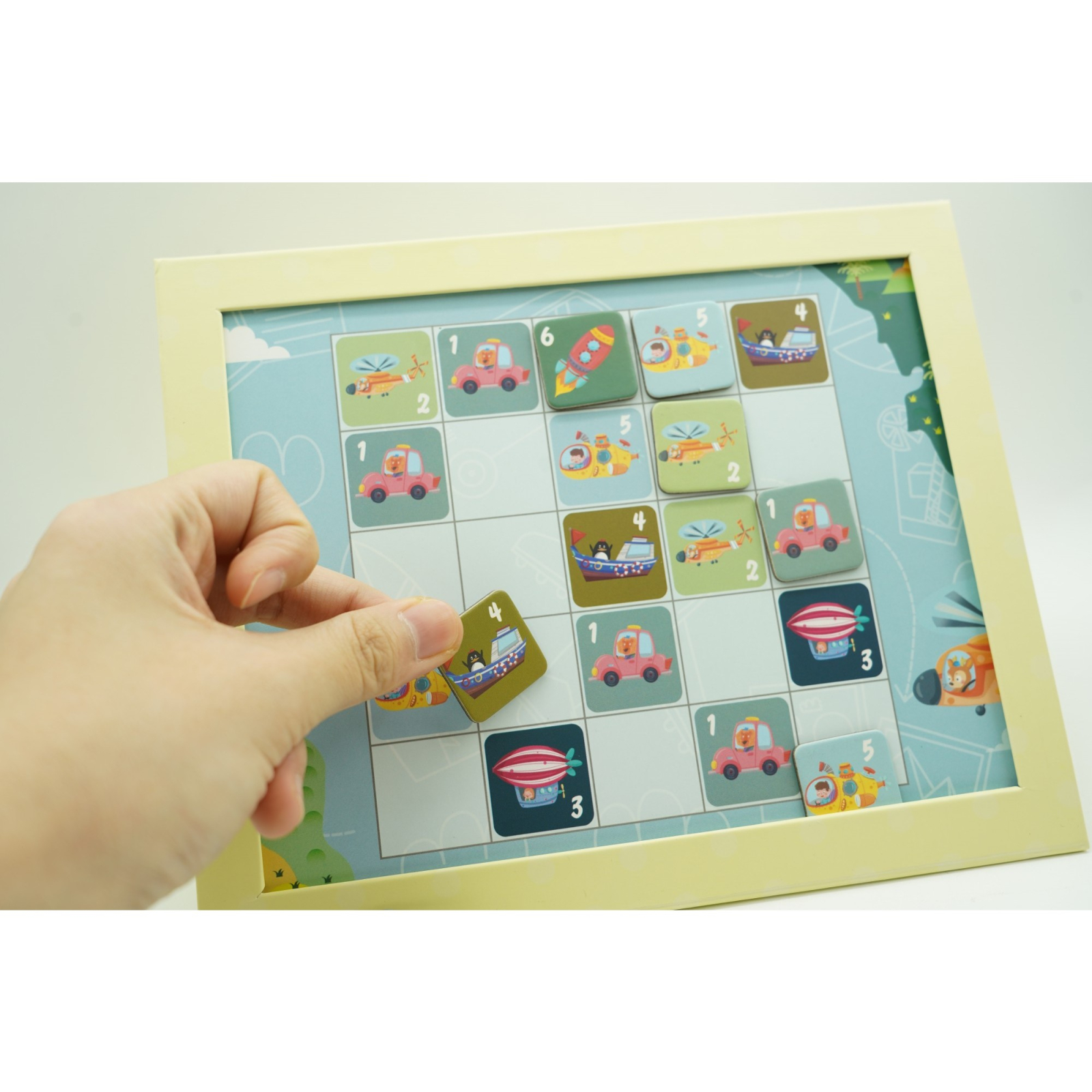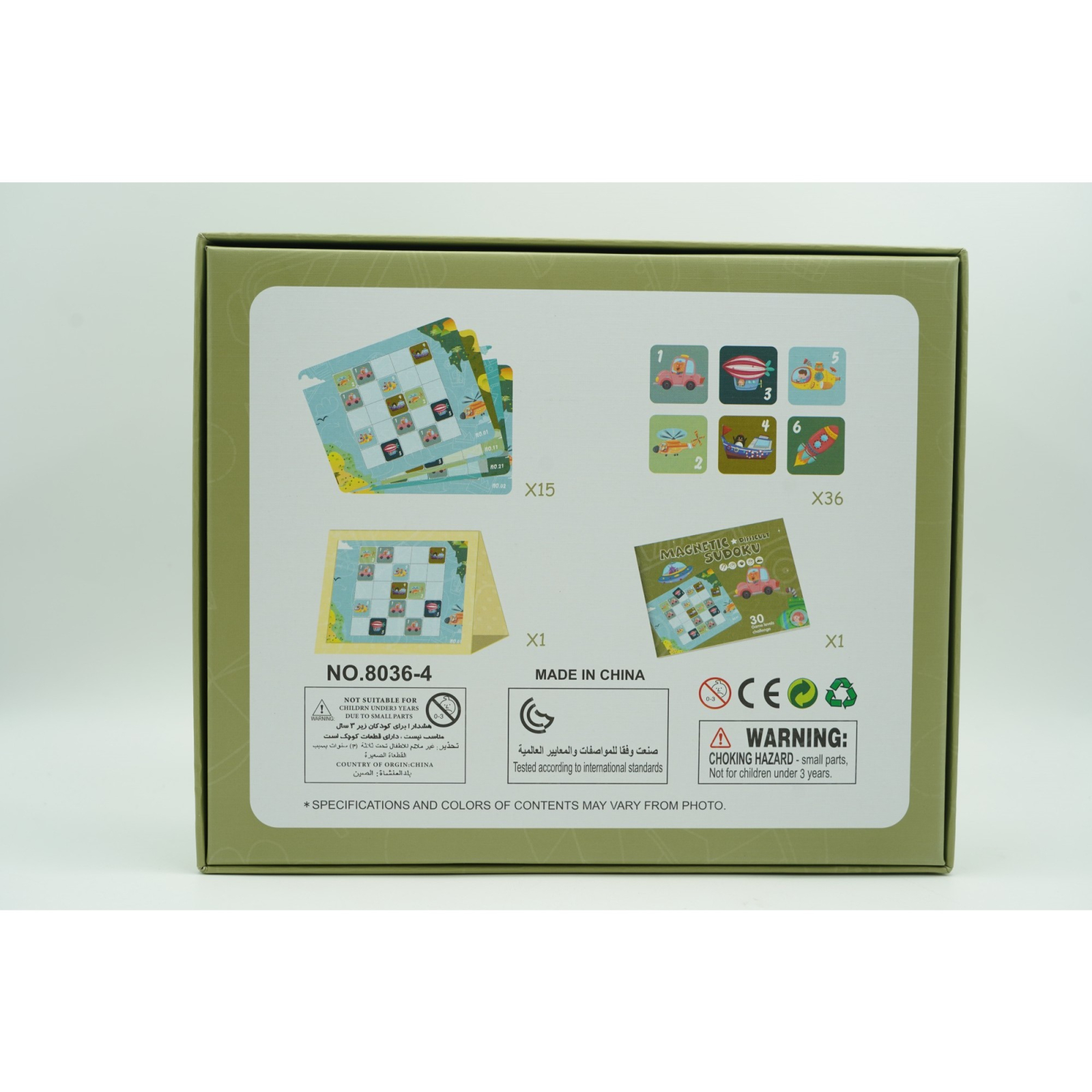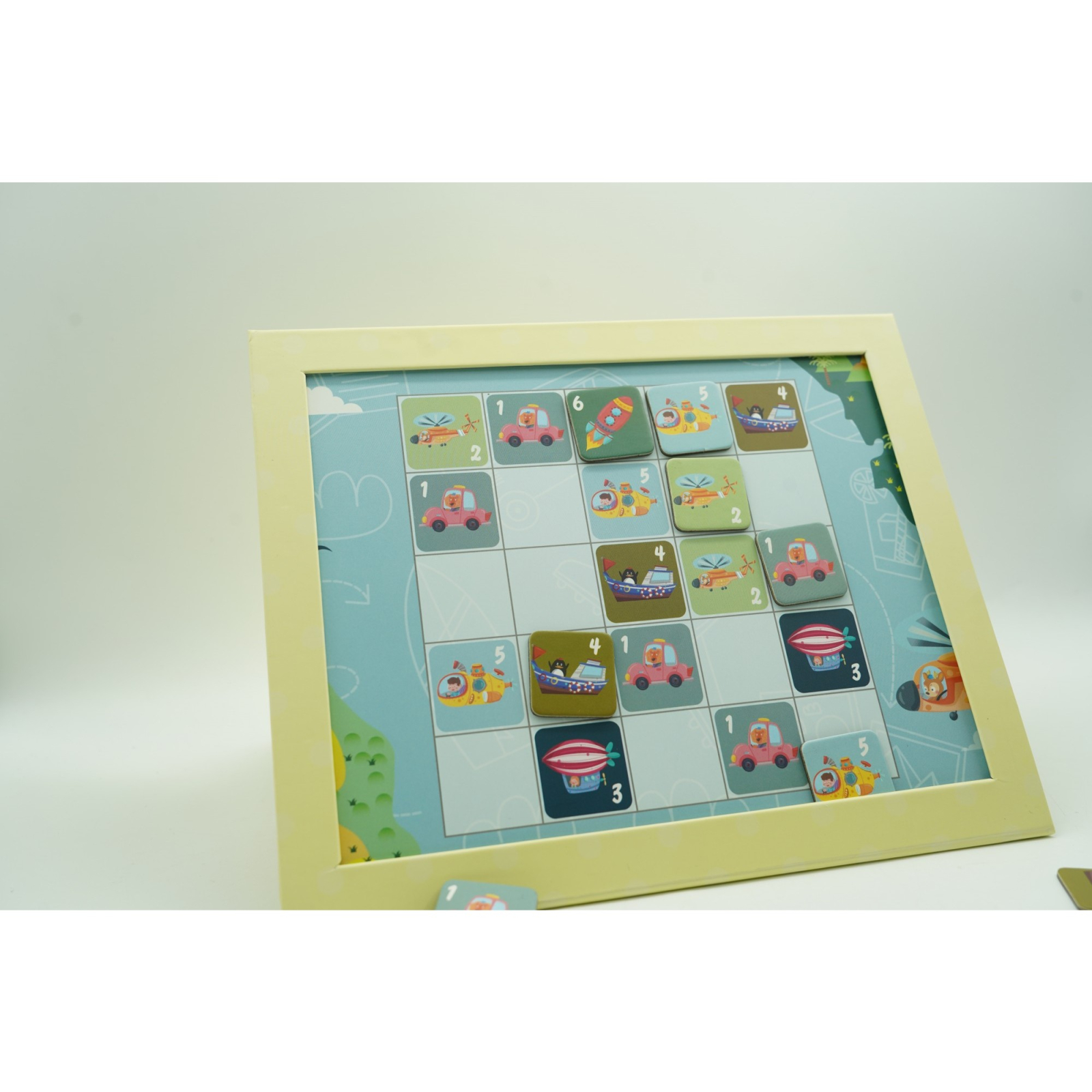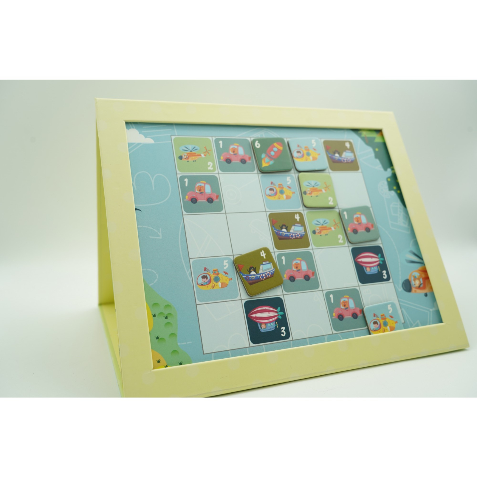 Joc educativ Sudoku cu tablita magnetica, 53 de piese, cartonase cu trafic, Verde
