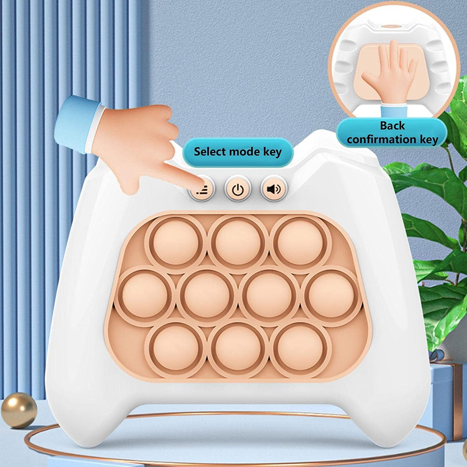 Joc Pop It, Flippy, consola, joc interactiv, antistres, cu baterii, Abs si silicon, Alb, 12 x 10 x 5.8 cm