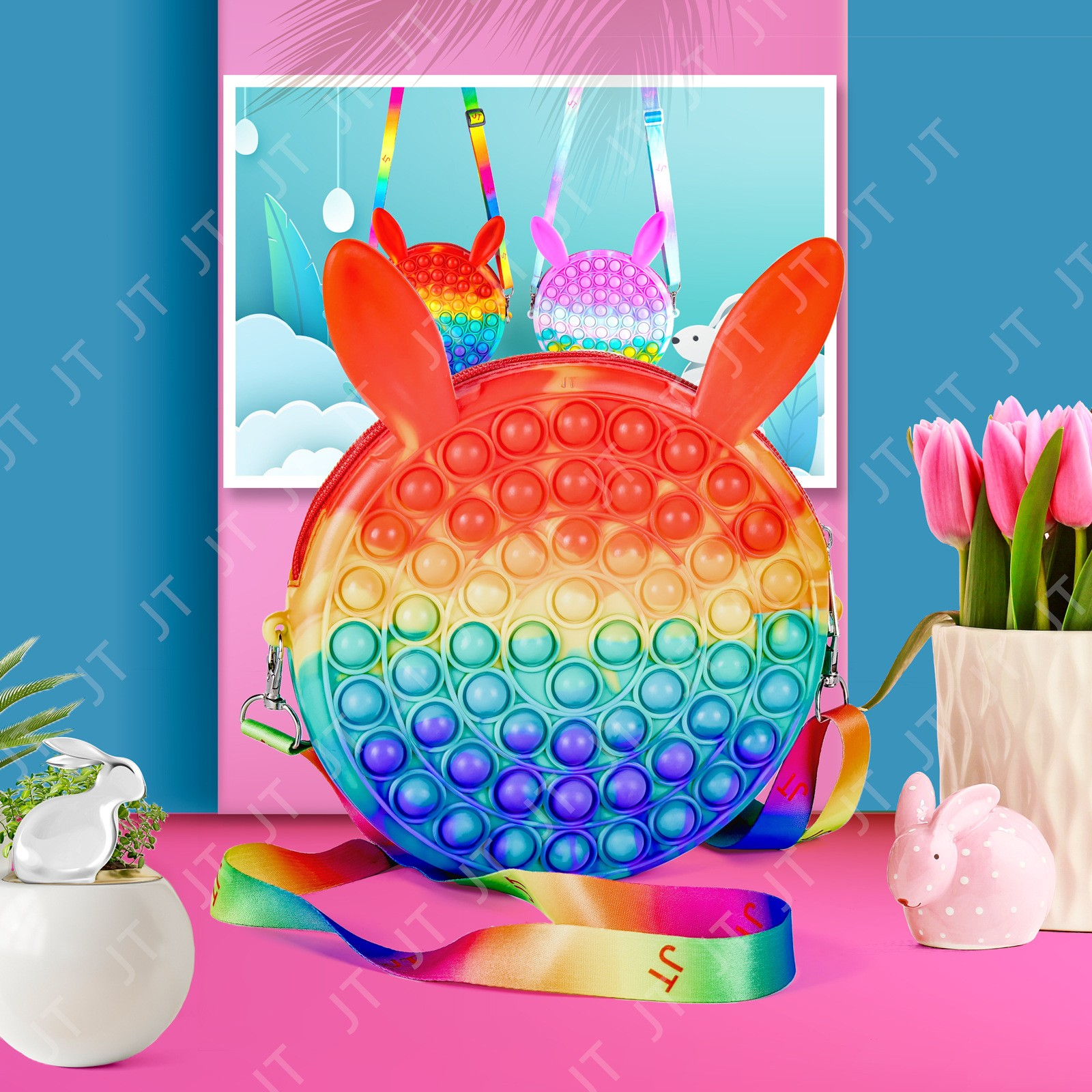 Jucarie antistres din silicon Flippy, Geanta Pop It, Iepuras, 16 cm, Curcubeu