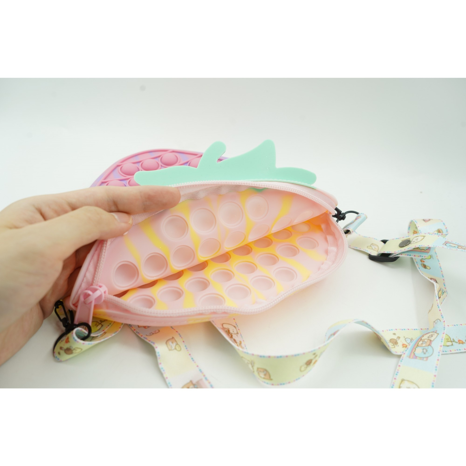 Jucarie Antistres din silicon Flippy, Pop It Now And Flip It, Capsuna, Multicolor