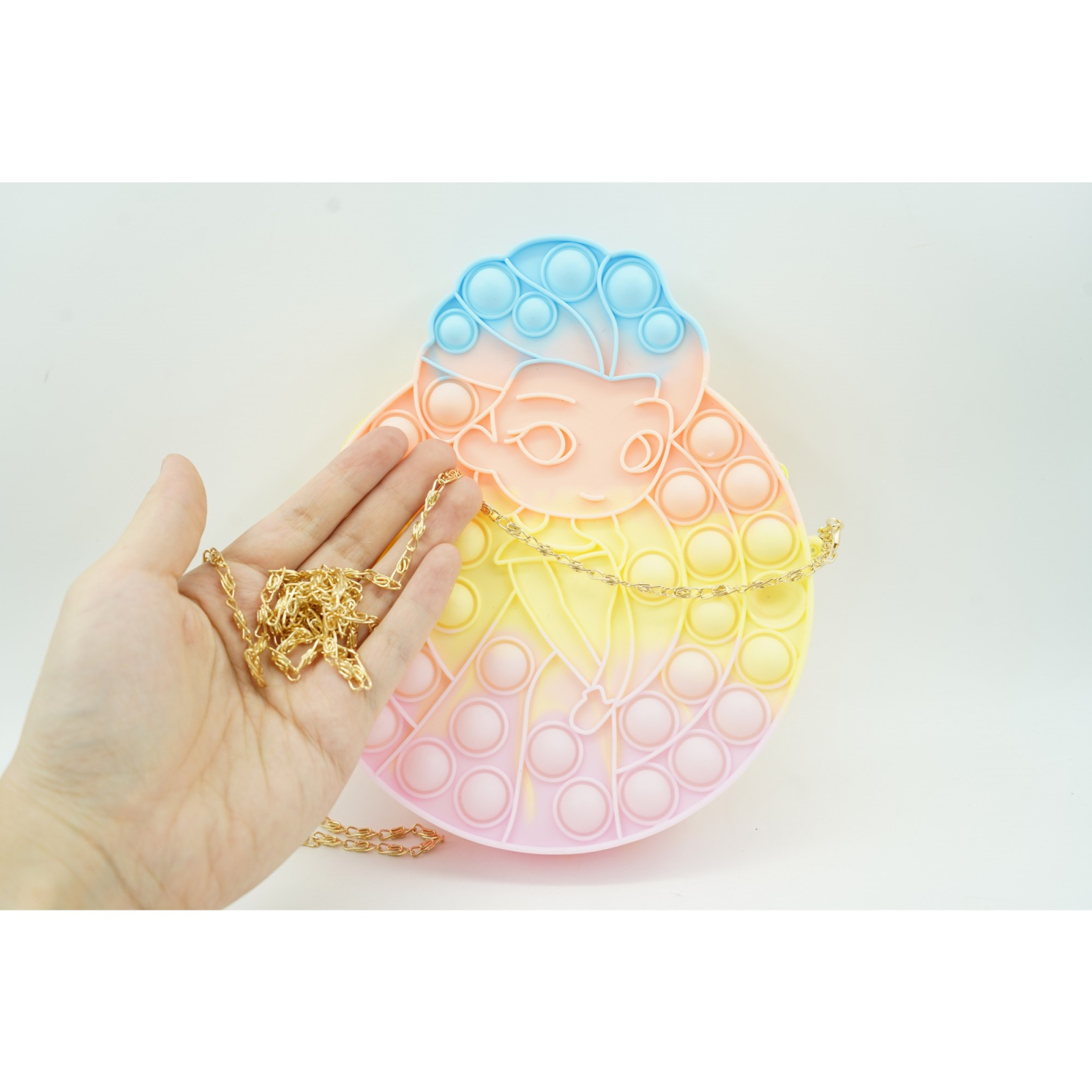 Jucarie antistres din silicon, Flippy, Pop It Now and Flip It, Geanta de umar, Mica printesa, 16 cm, Macarons