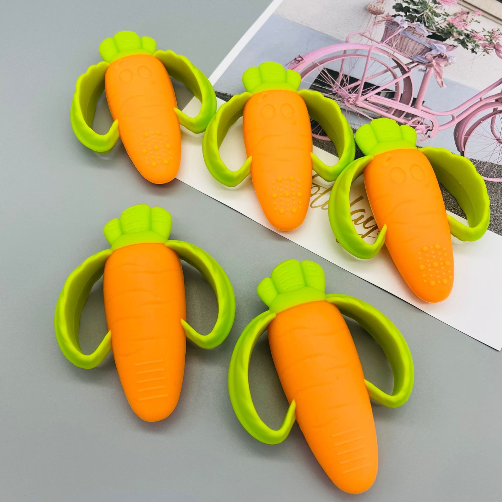 Design atractiv și ergonomic: Jucăria în formă de morcov are un design captivant, perfect pentru a atrage atenția bebelușilor. Forma și dimensiunile sale sunt ergonomice, ușurând prinderea și manipularea pentru bebeluși.
