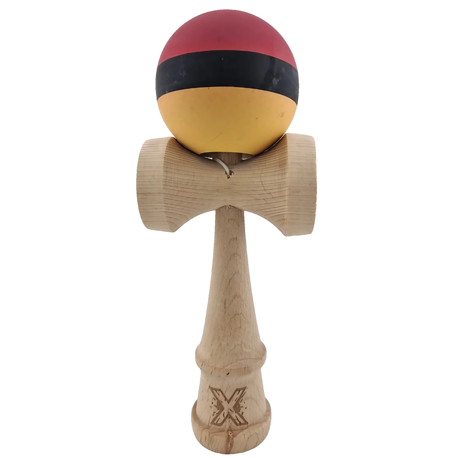 Jucarie Interactiva Kendama Profesionala, Flippy, din Lemn, 18 cm, Joc de Indemanare pentru Copii si Adulti, Multicolor Rosu Negru Galben