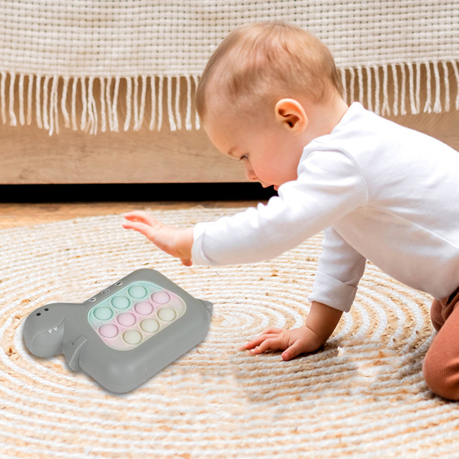 Descoperă jucăria interactivă Pop It Whack A Mole Flippy, model Dinozaur, ce oferă 4 moduri de joc și funcții multiple, cum ar fi flash-ul și muzica, pentru a aduce distracția în viața micuților! Fabricată din ABS și silicon, această jucărie este ideală pentru copiii cu vârsta de peste 3 ani, contribuind la dezvoltarea abilităților practice și a coordonării mână-ochi. Distracție și stimulare senzorială garantată într-un singur produs compact și ușor de utilizat!