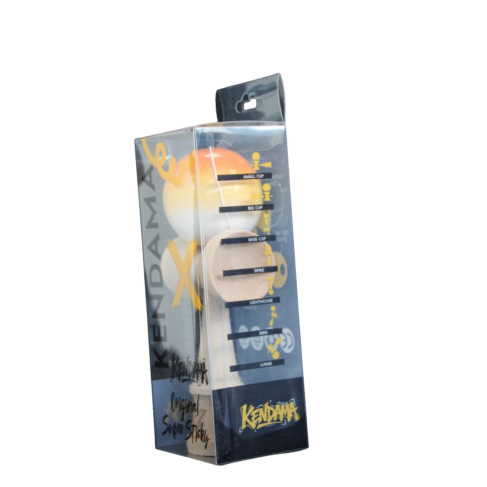 Jucarie Kendama X Originala, Profesionala, Flippy, Super Sticky din Lemn, 18 cm, Gradient Portocaliu/Galben/Alb