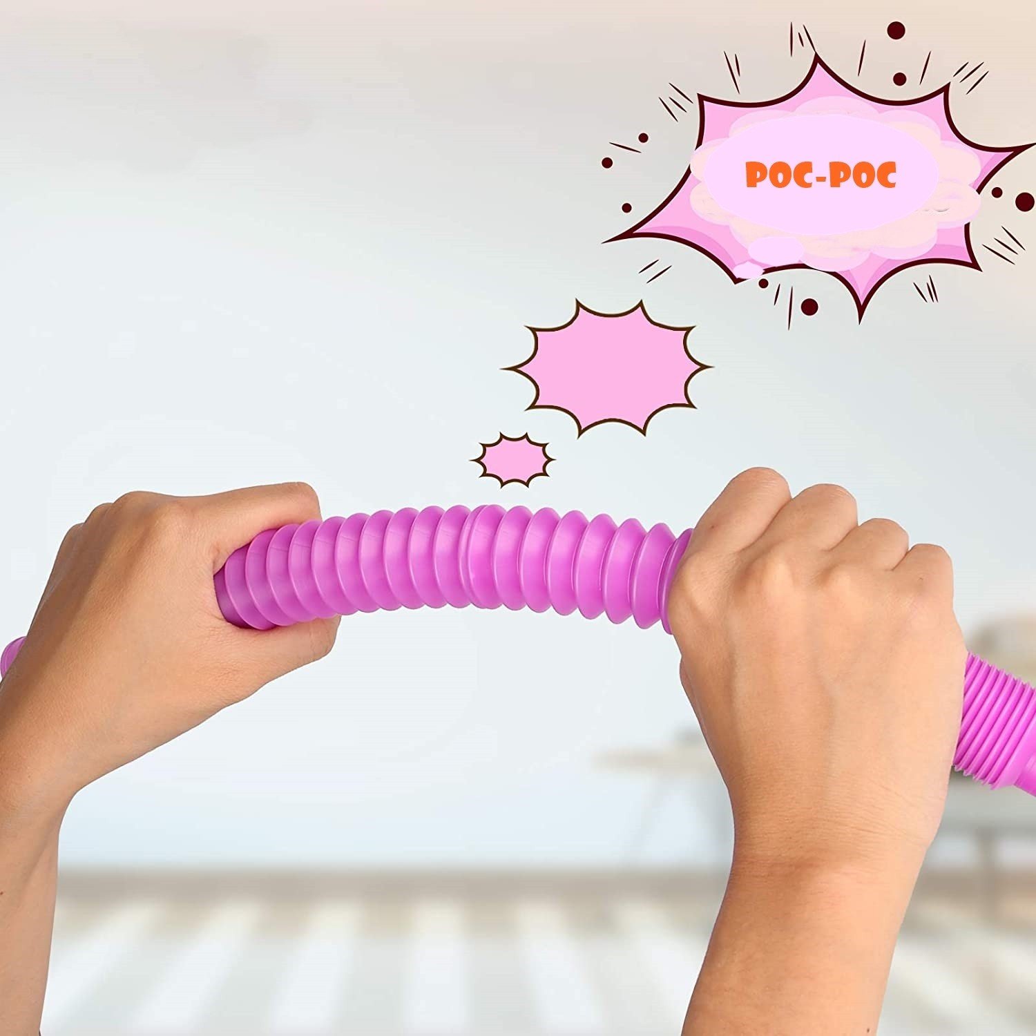 Jucarie Senzoriala Flippy - Fidget Pop Tubes, Antistres, Super Elastic, Roz