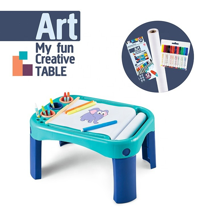 Masuta pentru copii cu hartie din plin si markere colorate o sa va tina copiii ocuparti ore intregi. Cu ajutorul acestei table multifunctionale, cei mici isi vor explora partea creativa.