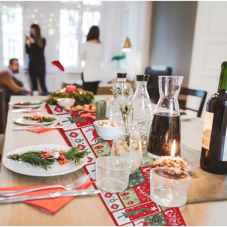 Napron Decorativ pentru Masă Flippy, Model Merry Christmas, Tematică Crăciun, 35 x 180 cm, Roșu/Verde