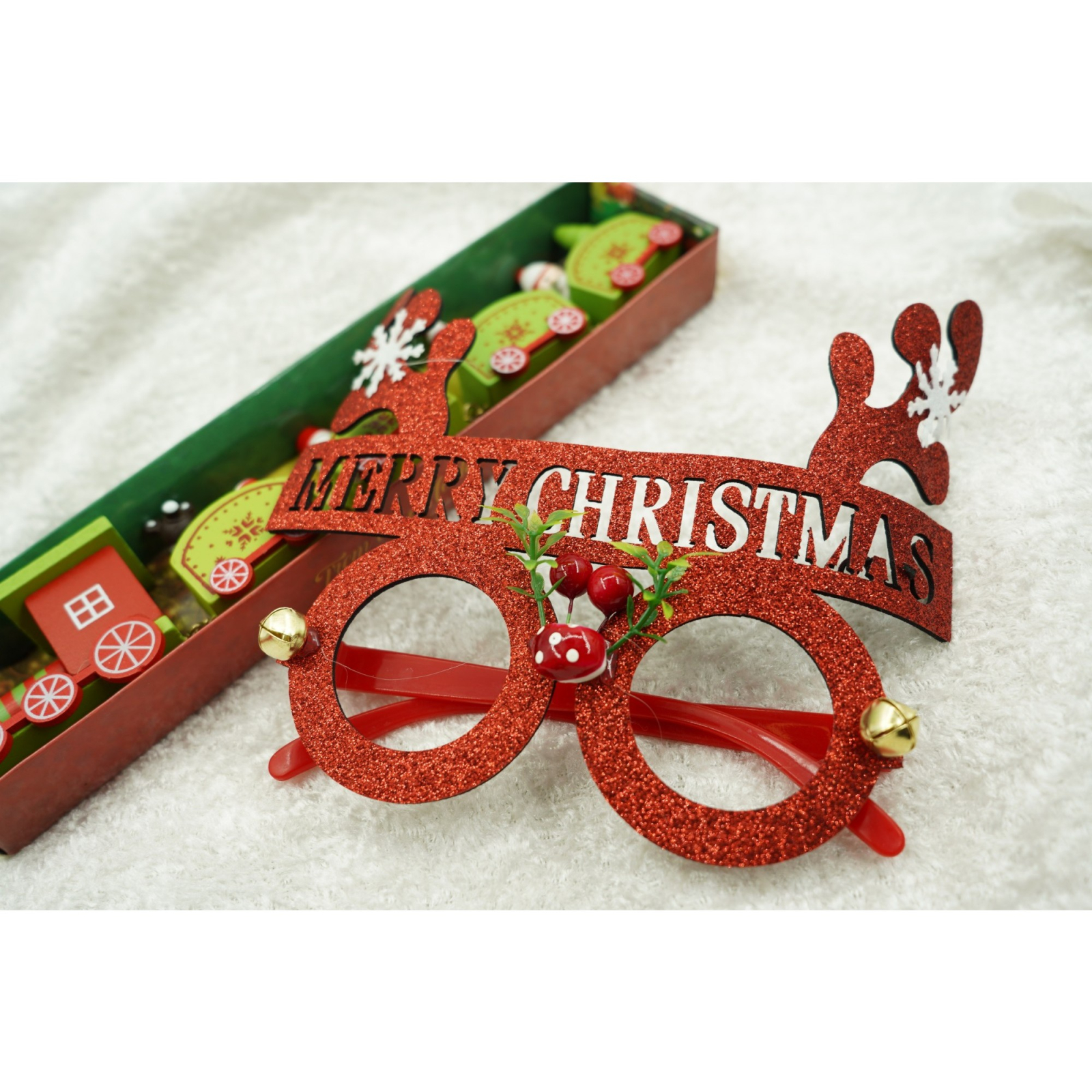 Ochelari petrecere de Craciun, rotunzi, Rosu, din Plastic si Poliester, Flippy