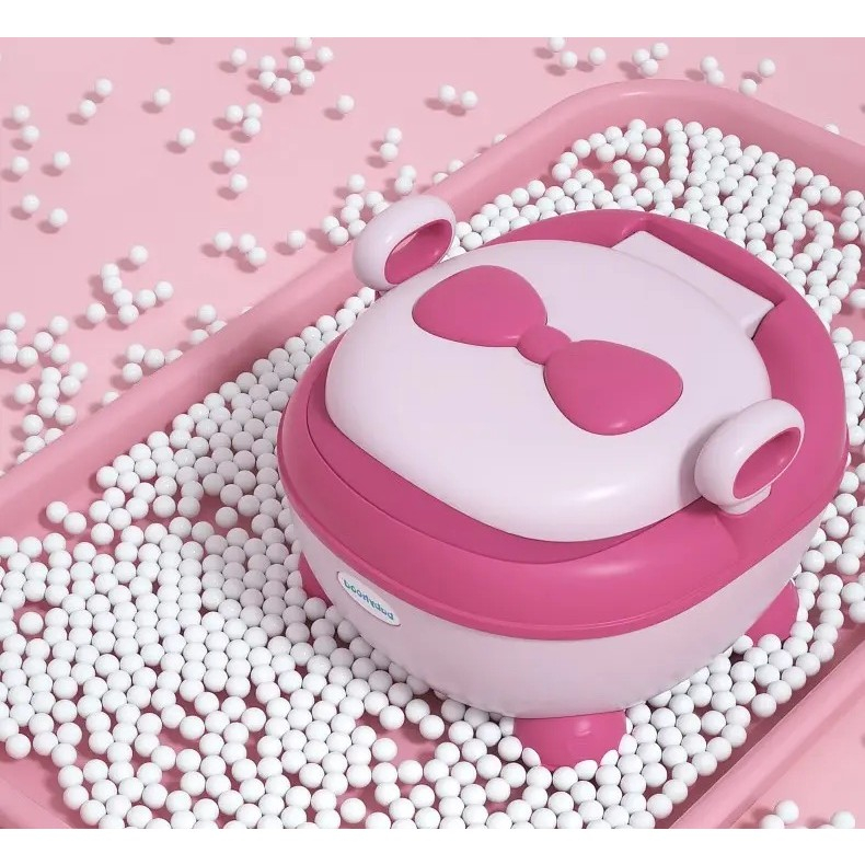 Oliță pentru Copii Flippy, +1an, Portabilă, Design cu Fundiță, cu Capac, Model Prietenos, Non-Toxic, Compartiment Detașabil, Roz