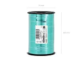 Panglică din plastic metalizat, culoare turcoaz, lățime aprox. 5 mm, lungime aprox. 225 m.