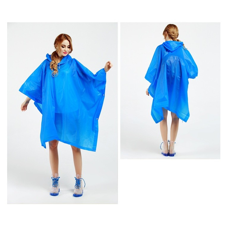 Pelerina de Ploaie , pentru Adulti, EVA, Tip Poncho, Impermeabila, Rezistenta la Vant, Capse Laterale, 160 g, Albastru
