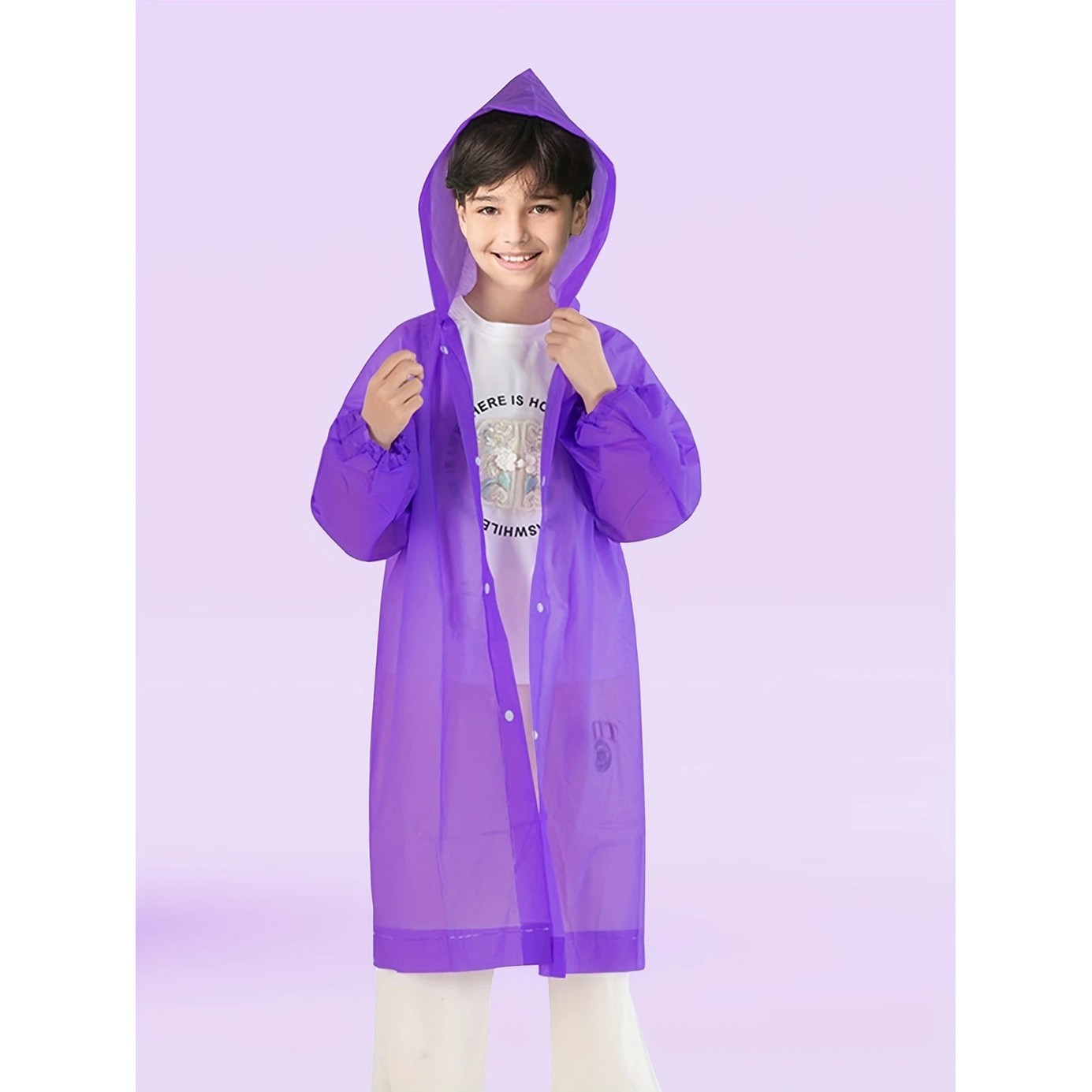 Pelerina de Ploaie , pentru Copii 100-145 cm, din EVA, Impermeabila, Inchidere cu Capse, Mov