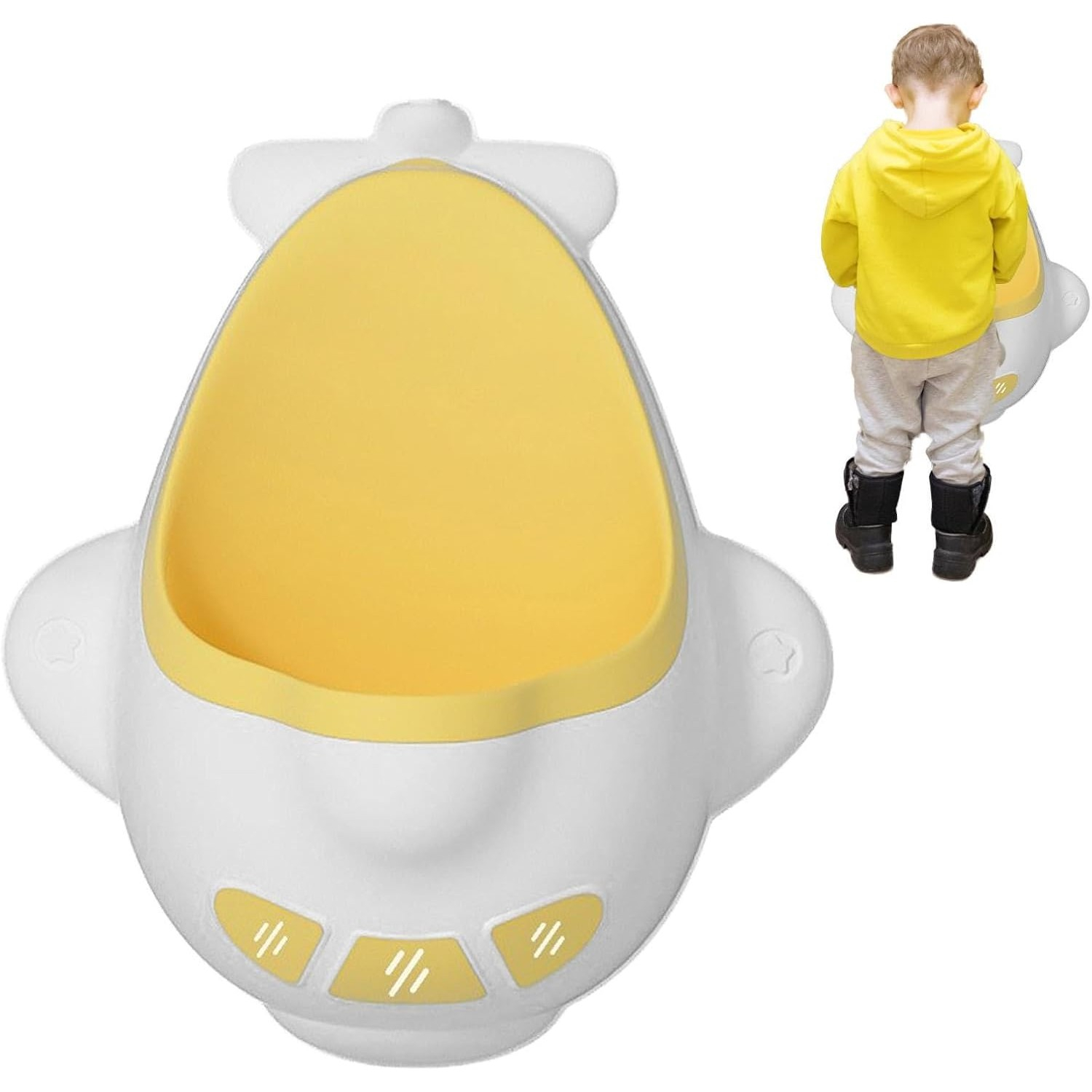 Pisoar pentru Baieti , 0-8 Ani, in Forma de Avion, Perie Inclusa, Montare pe Perete, Carlig Autoadeziv Inclus, 29 x 33.5 cm, Alb/Galben