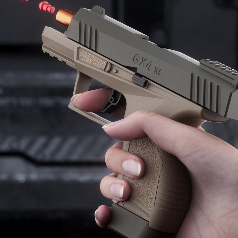 Intra in actiune cu acest pistol de jucarie realist GX4 XL, conceput pentru ore intregi de distractie si simulari sigure! Cu un design modern, in nuanta "Desert Yellow" (galben desert), si un mecanism autentic de ejectare a cartuselor, acest blaster este perfect pentru jocurile de rol si antrenamentele de tir, oferind o experienta imersiva.