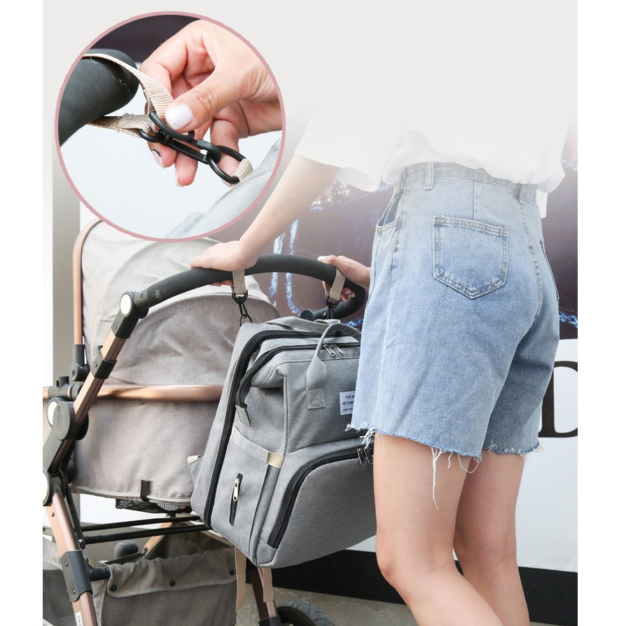 Rucsac Multifunctional pentru Mamici, Flippy, cu Patut Pliabil si Baza de Schimbat, Rezistent la Apa, Capacitate Mare, Usor, Compartimente Multiple, Buzunar Termic pentru Lapte, 42 x 32 x 22 cm, Gri