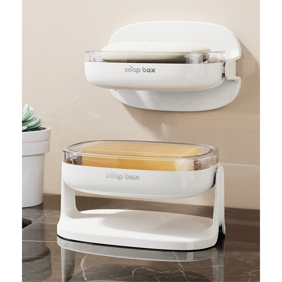 Savoniera cu Suport 2 in 1 , Pentru Perete sau Blat, PET, Scurgere Optima, Alb