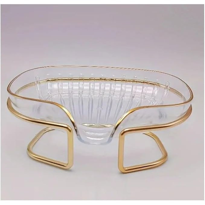 Savonieră cu Suport, Flippy, Sistem de Scurgere a Apei, Margine Aurie, din TPE, 14 x 8.5 x 9 cm