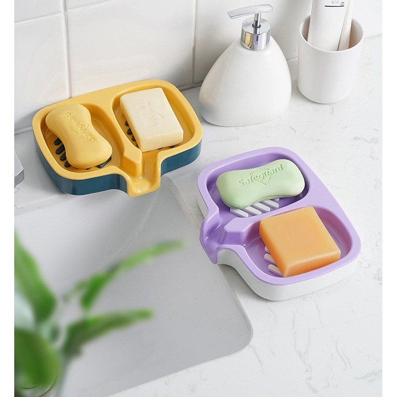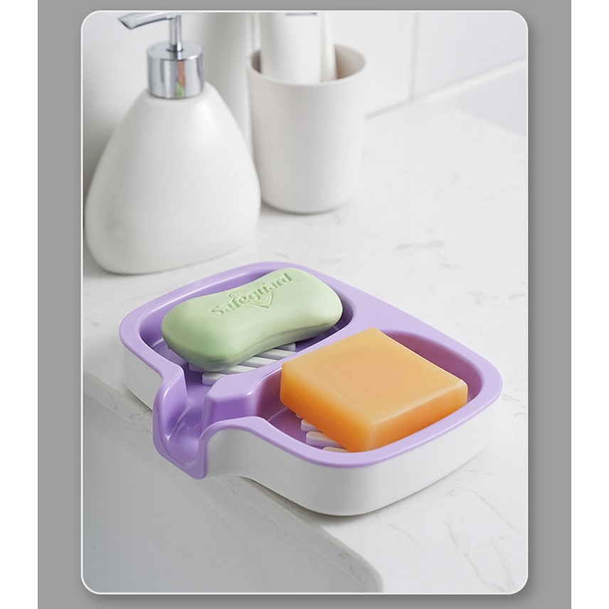 Savoniera Dubla , Sistem de Scurgere a Apei, din ABS, 14.5 x 18 x 3 cm, Mov/Alb