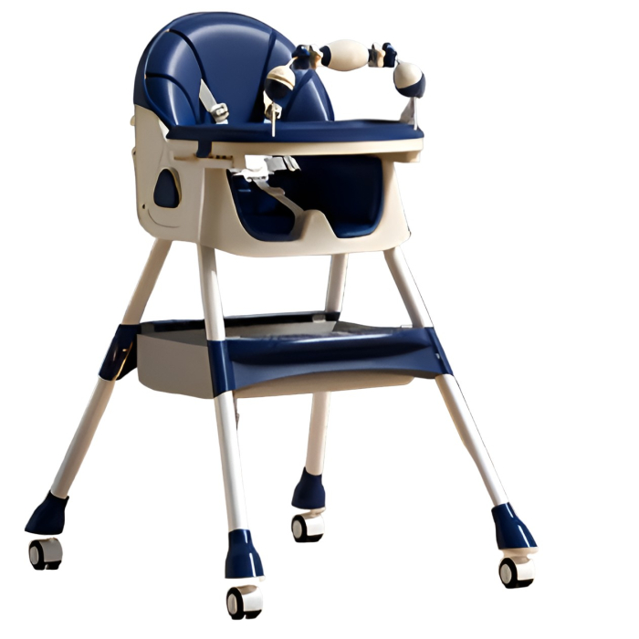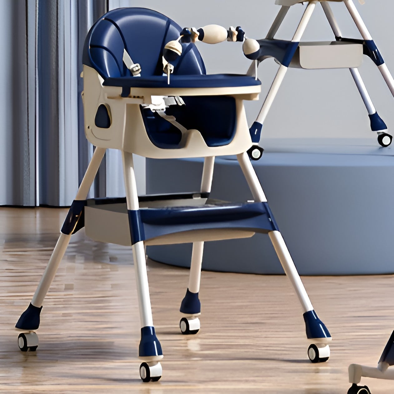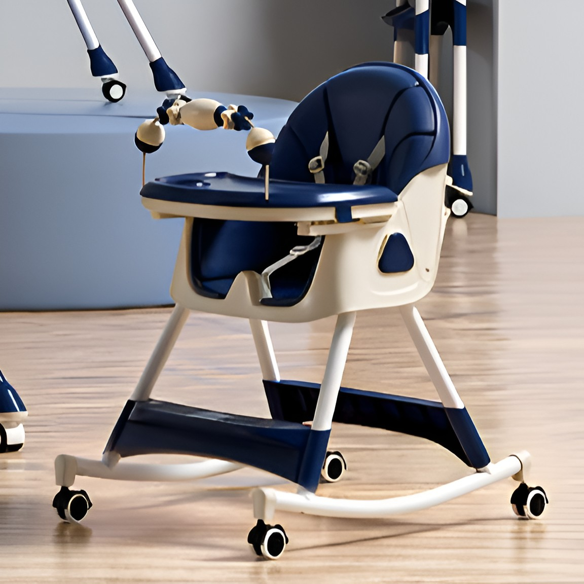 Siguranță și calitate: Scaunul pentru bebeluși prezintă tub de oțel îngroșat și structură stabilă de tip A care măresc stabilitatea scaunului. Centura de siguranță este cu închidere în 5 puncte pentru a vă proteja copilul în orice moment. Scaunului adoptă un design anti-cădere, iar butoanele de blocare de pe roți previn alunecarea.