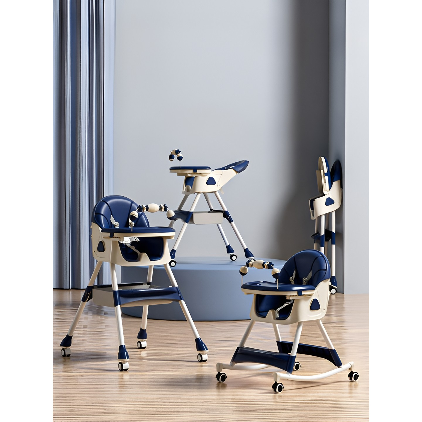 Scaun de Masa pentru Bebelusi si Copii, Flippy, 2 Tavite si Husa Detasabile, Multifuncțional, Stabil, Centura de Siguranta, Spatar Reglabil Moale, Balansoar, Cos de Depozitare, de la 6 Luni, Albastru