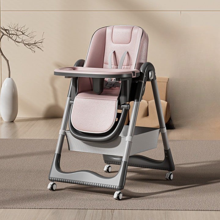 Scaun de Masa pentru Bebelusi si Copii, Flippy, 2 Tavite si Husa Detasabile, Multifuncțional, Stabil, Centura de Siguranta, Inaltime Ajustabila, Spatar Reglabil Moale, Cos de Depozitare, de la 6 Luni, Roz