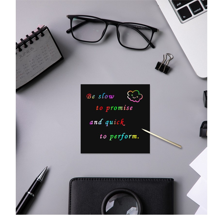 Set 100 de Planșe Razuibile Curcubeu, Flippy, cu 2 Creioane din Bambus și 2 Șabloane, pentru Copii 3+ Ani, 8.5 x 8.5 cm, Multicolor