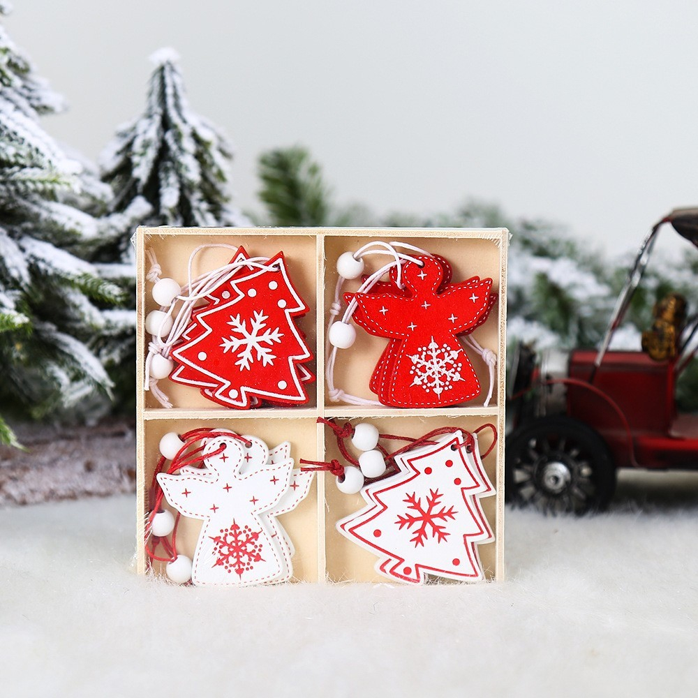 Set 12 Decorațiuni de Crăciun din Lemn Flippy cu Snur pentru Agatare în Brad - Model Brazi si Ingerasi