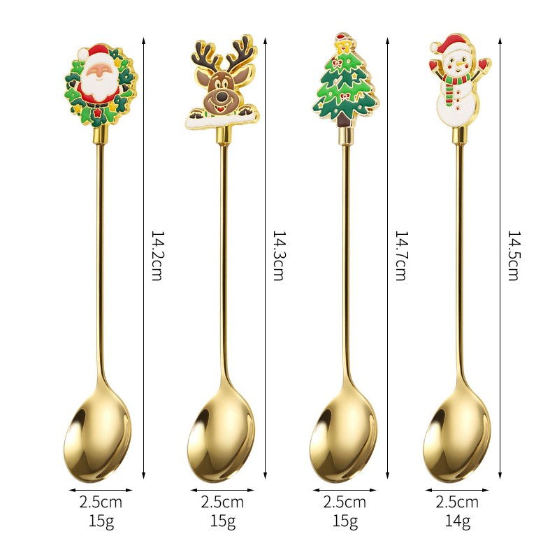 Set 4 Lingurite Flippy, Tematică Crăciun, Model „Carry the Merry”, din Oțel Inoxidabil, 4 Modele Asortate, Cutie Cadou, 19.5 x 16 x 2 cm, Multicolor