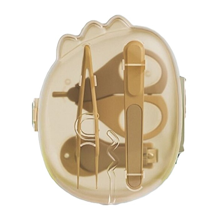 Set 4in1 de Ingrijire Unghii pentru Bebelusi, Flippy, Cutie de Depozitare Dinozaur Transparent, 0-6 Ani, 11.5 x 9 x 3 cm, Bej