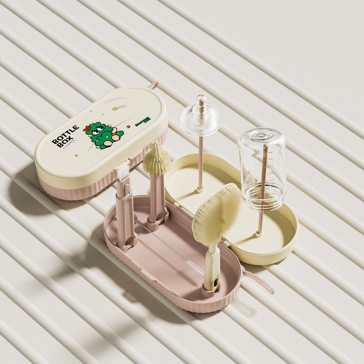 Set Portabil cu Suport de Spălare/Uscare Biberoane, Flippy – Cutie Multifuncțională pentru Curățarea Tetinelor, Suzetelor, Paharelor și Biberoanelor