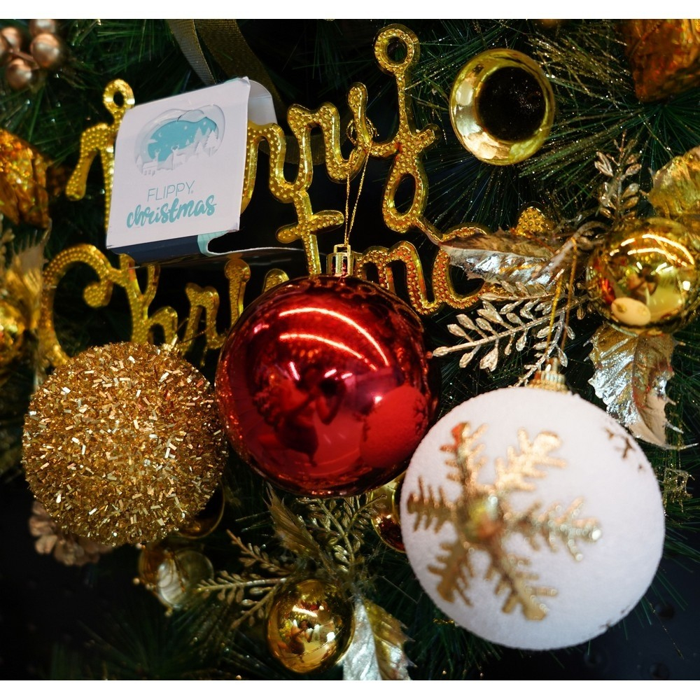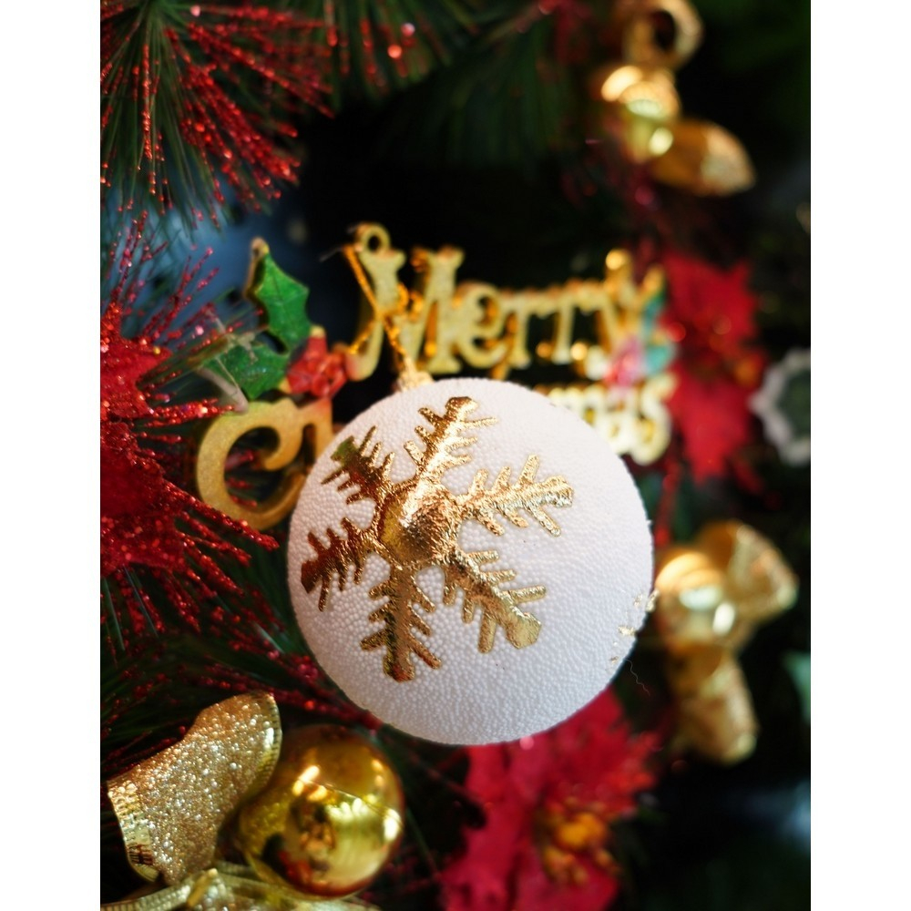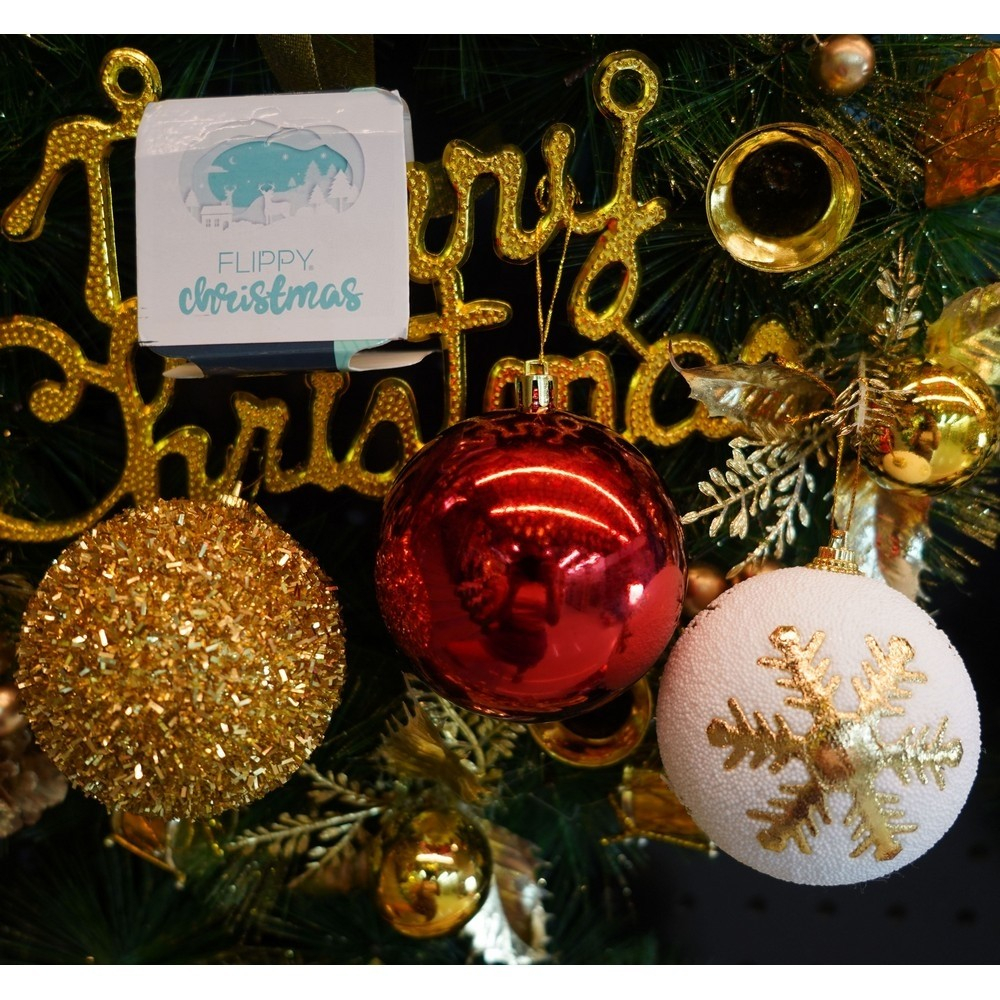 Set de 12 ornamente de brad, Flippy, de tip Glob, Alb/ Rosu, din polistiren, cu finisaj sclipitor , cutie 8 cm adancime x 32 cm lungime x 24 cm inaltime
