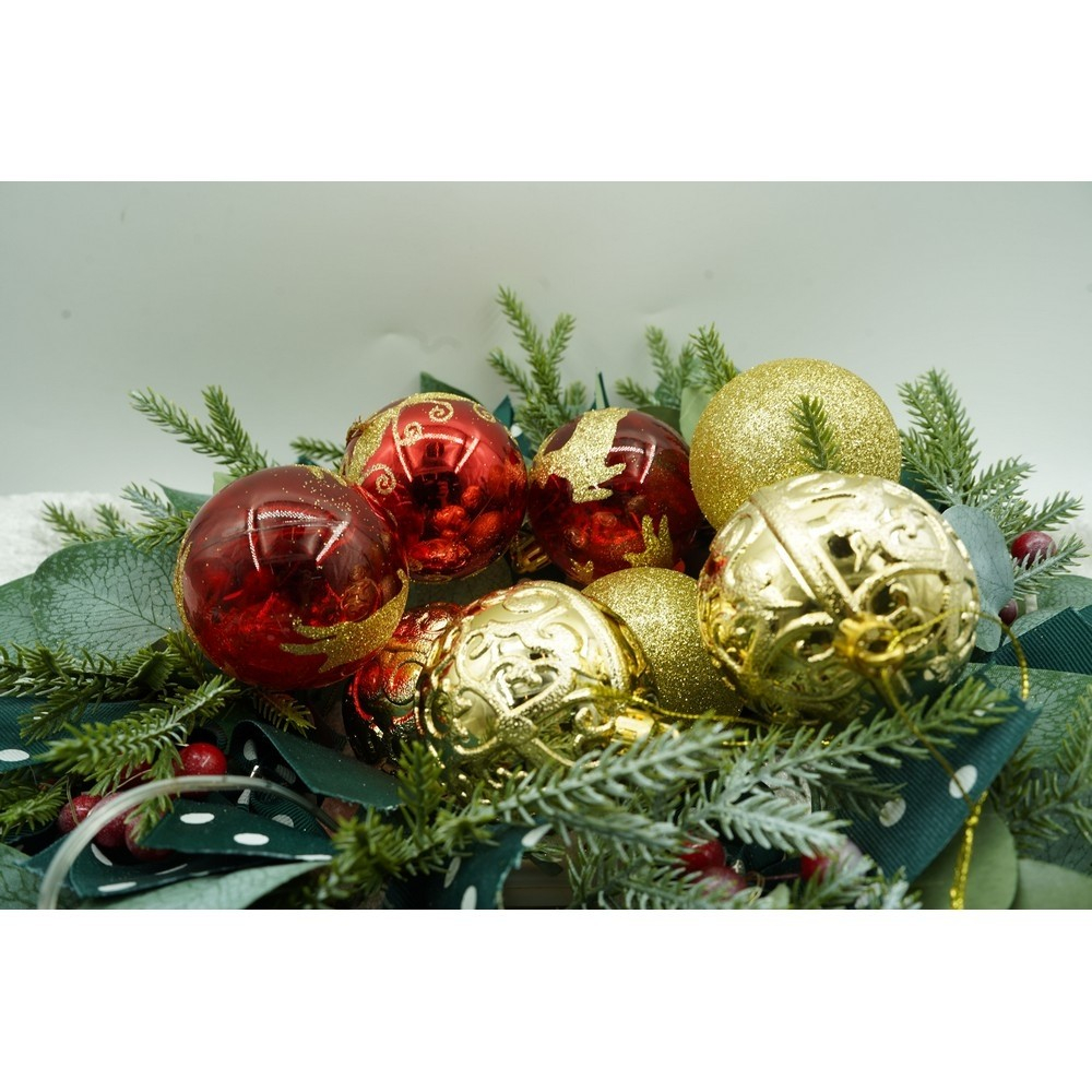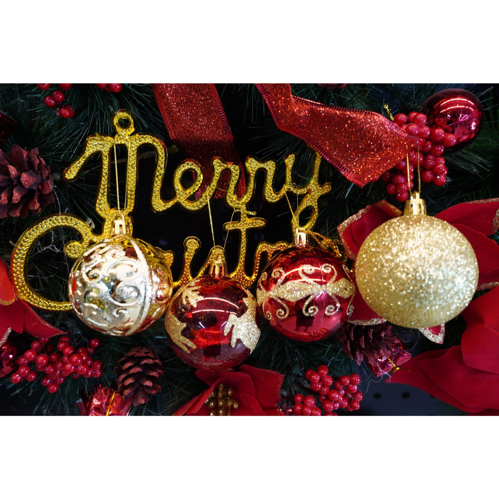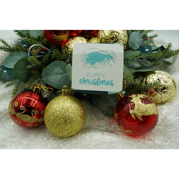 Set de 24 ornamente de brad, Flippy, de tip Glob, Rosu/ Auriu, cu ø de 6 cm, din plastic, cu finisaj sclipitor , cutie 14 cm lungime x 32 cm inaltime x 14 cm adancime