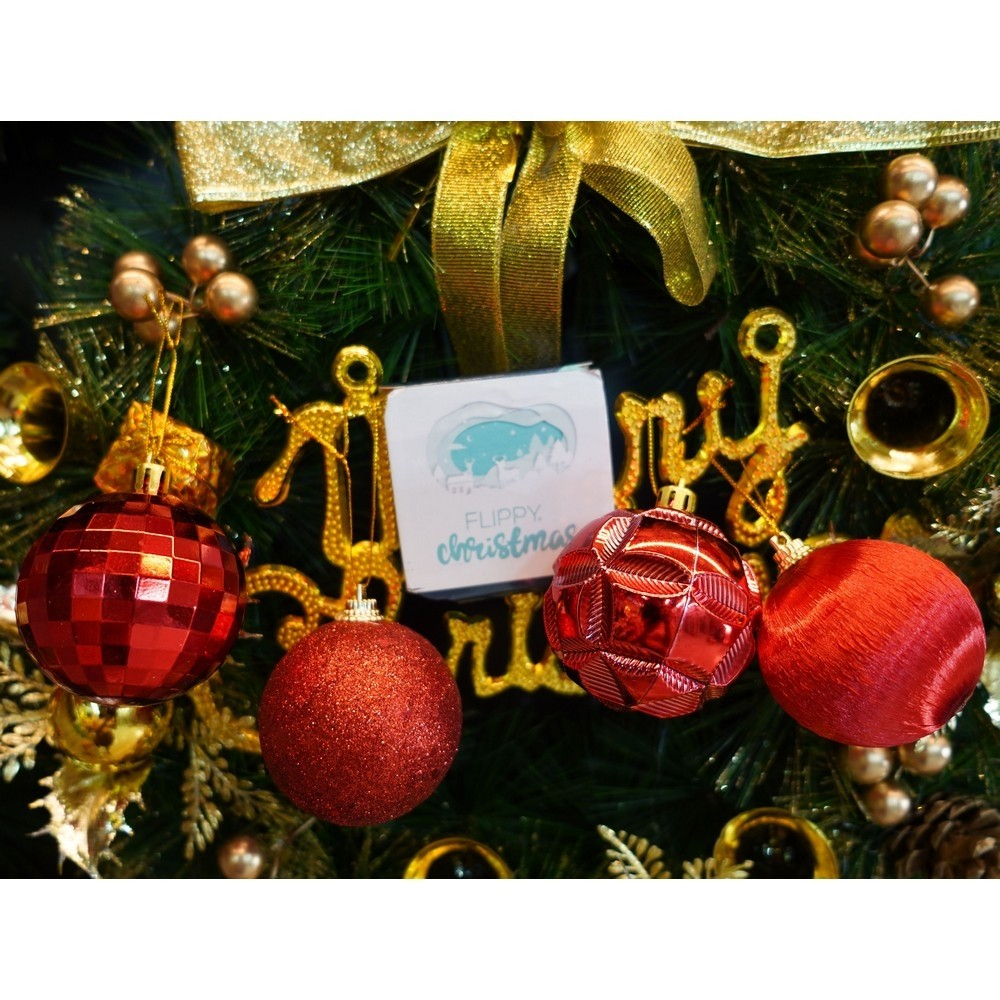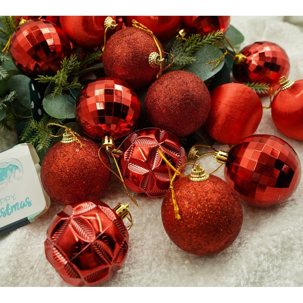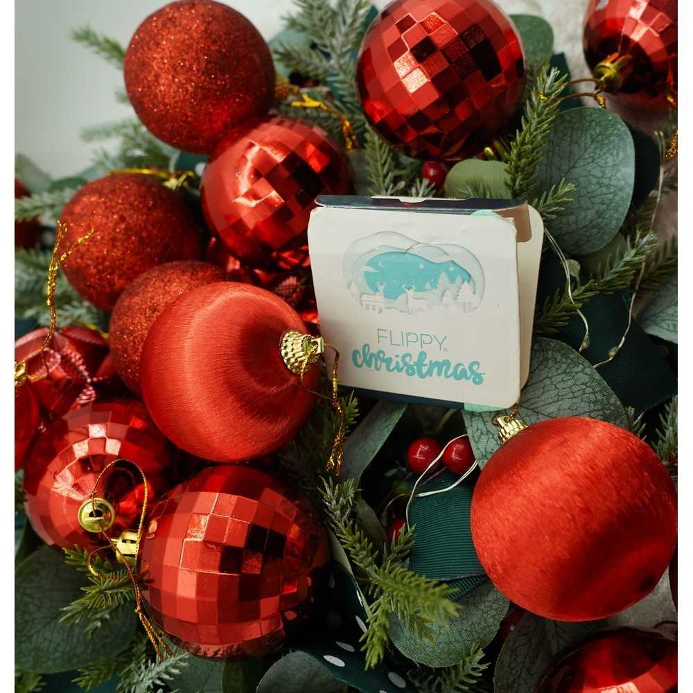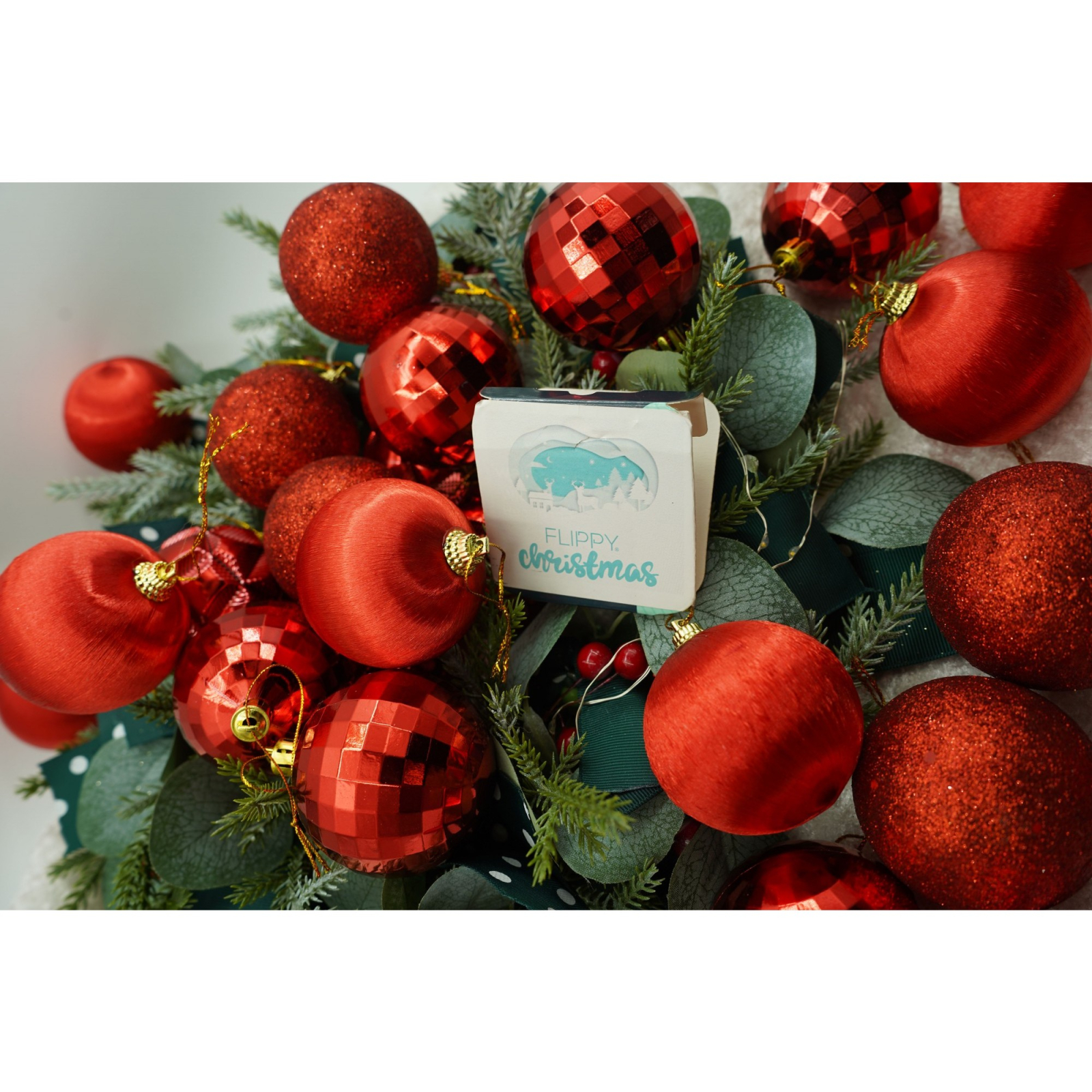 Set de 28 ornamente de brad, Flippy, de tip Glob, Rosu, din polistiren, cu finisaj sclipitor , cutie 18 cm adancime x 22 cm inaltime x 18 cm lungime)