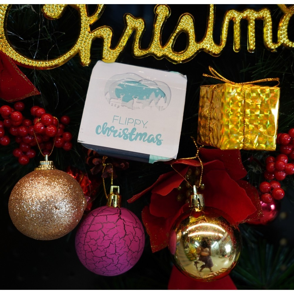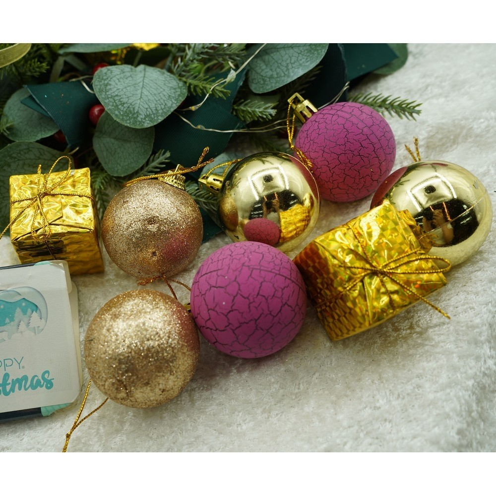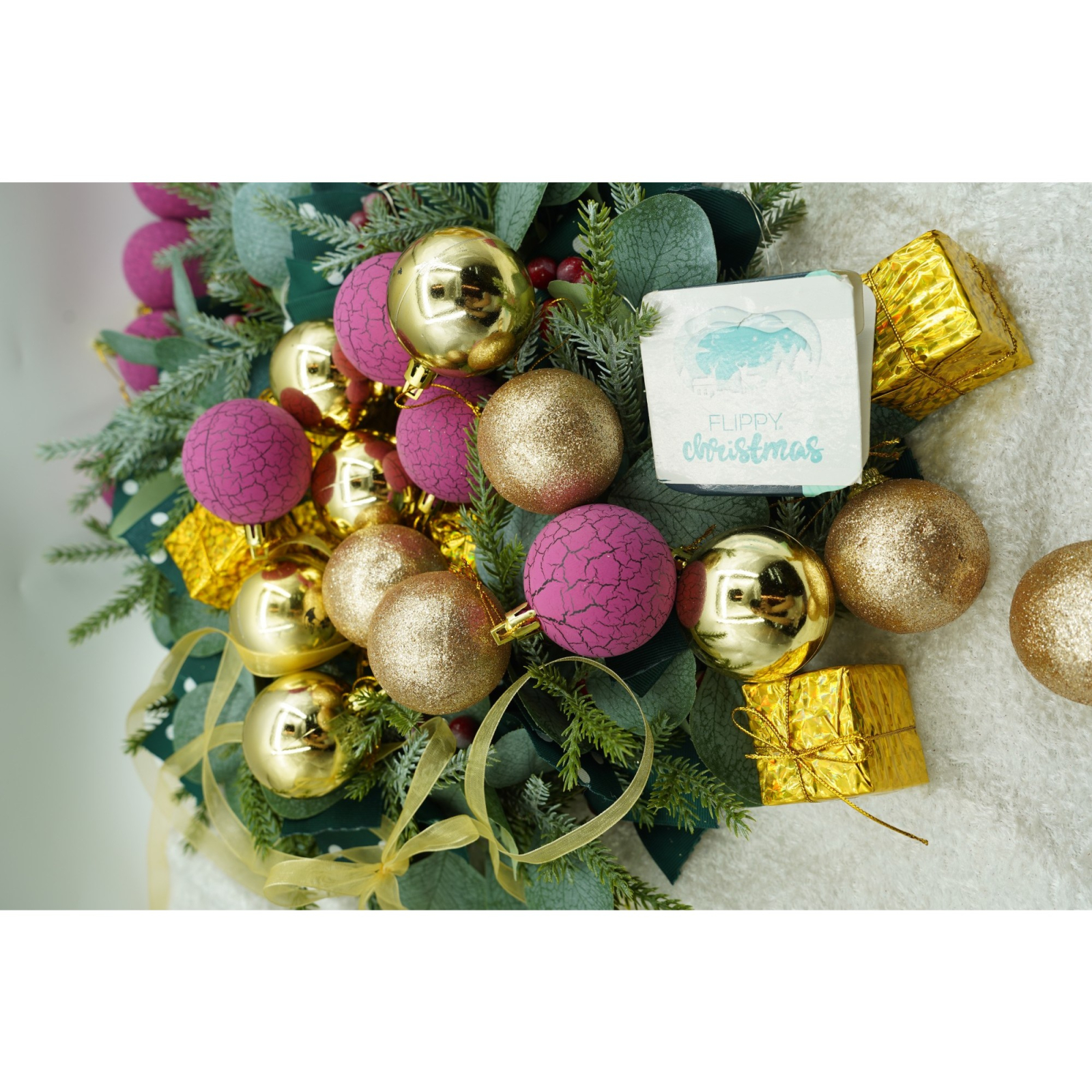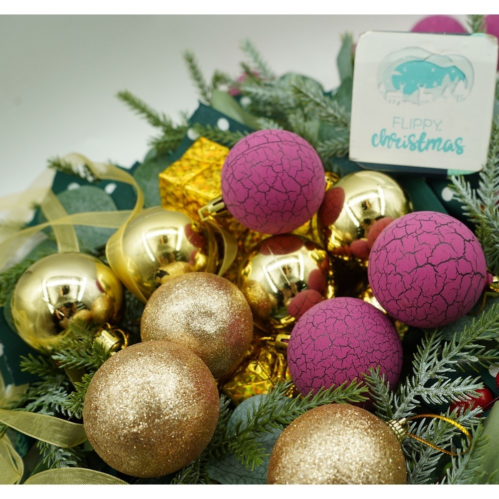 Set de 35 ornamente de brad, Flippy, de tip Glob, Auriu/ Mov, din polistiren, cu finisaj sclipitor , cutie 14 cm adancime x 23 cm inaltime x 14 cm lungime)