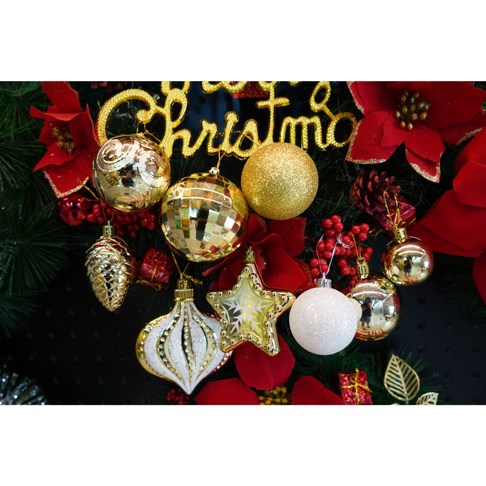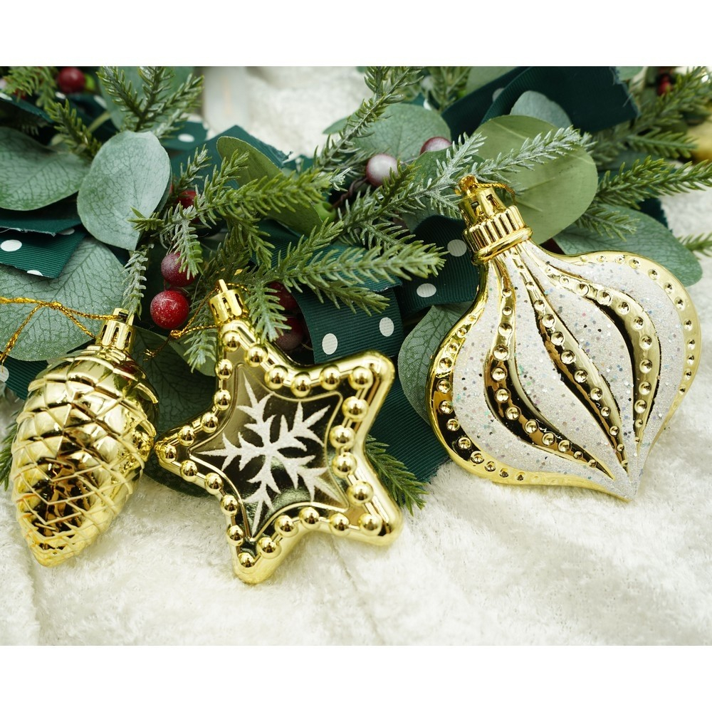 Set de 36 ornamente de brad, Flippy, de tip Glob, Auriu, din plastic, cu finisaj sclipitor , cutie 12 cm adancime x 24 cm inaltime x 18 cm lungime