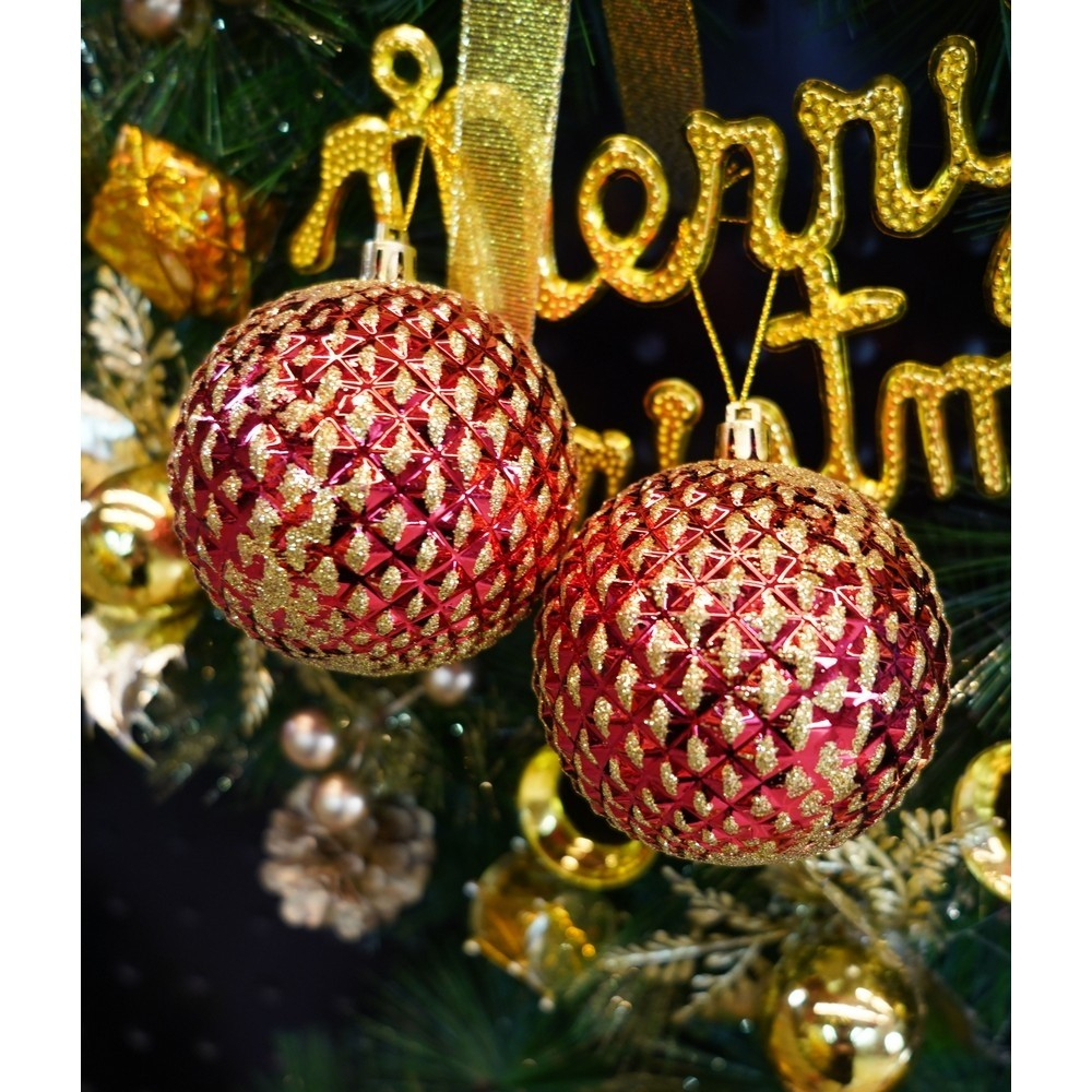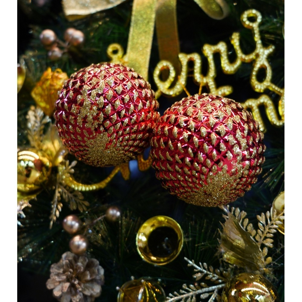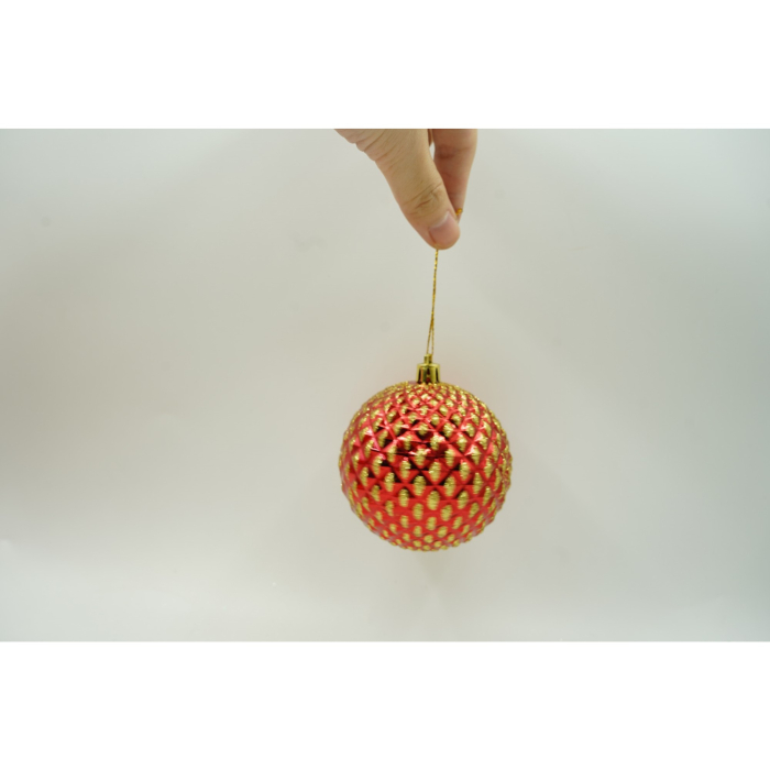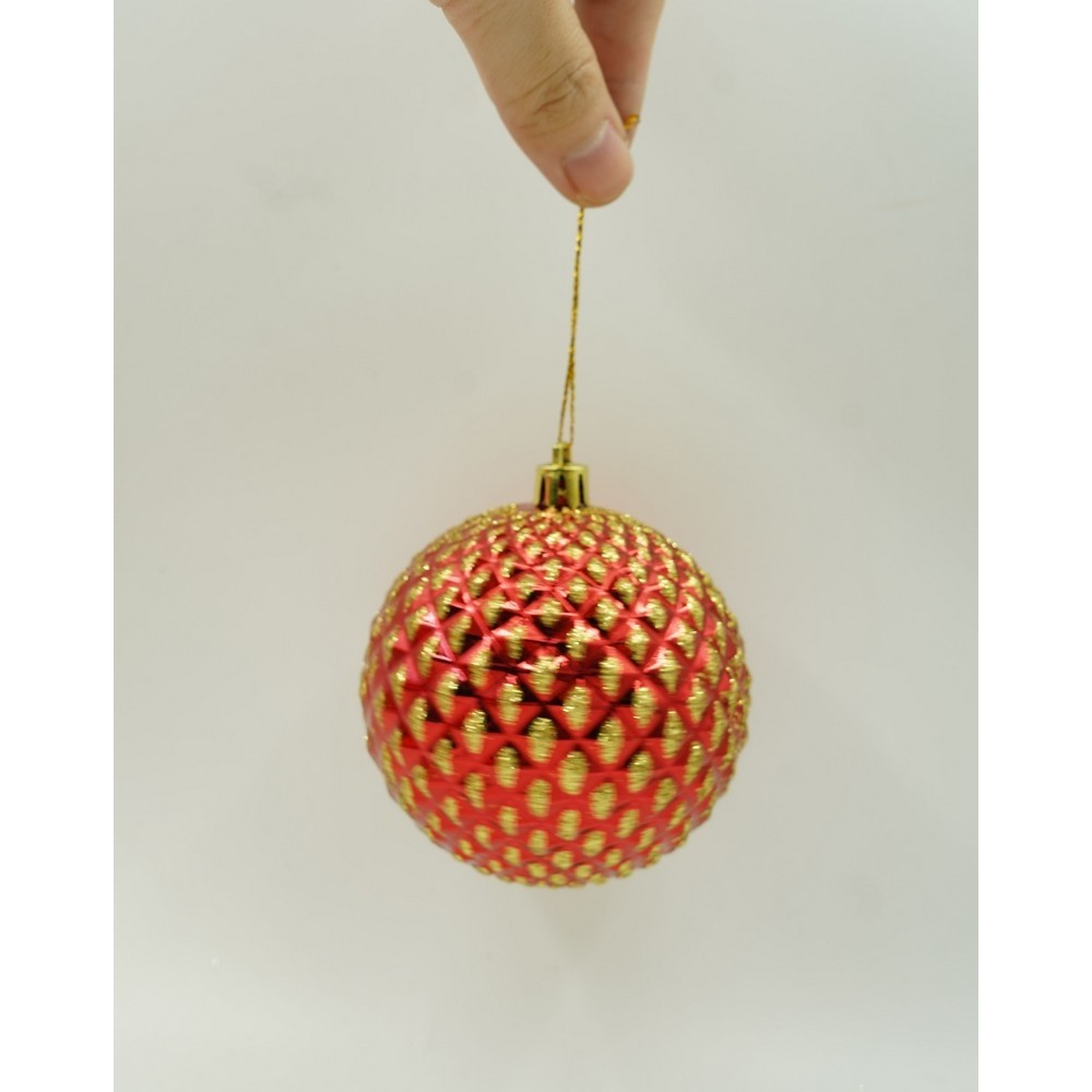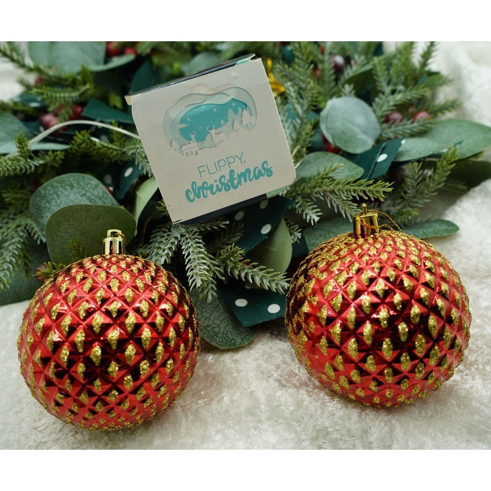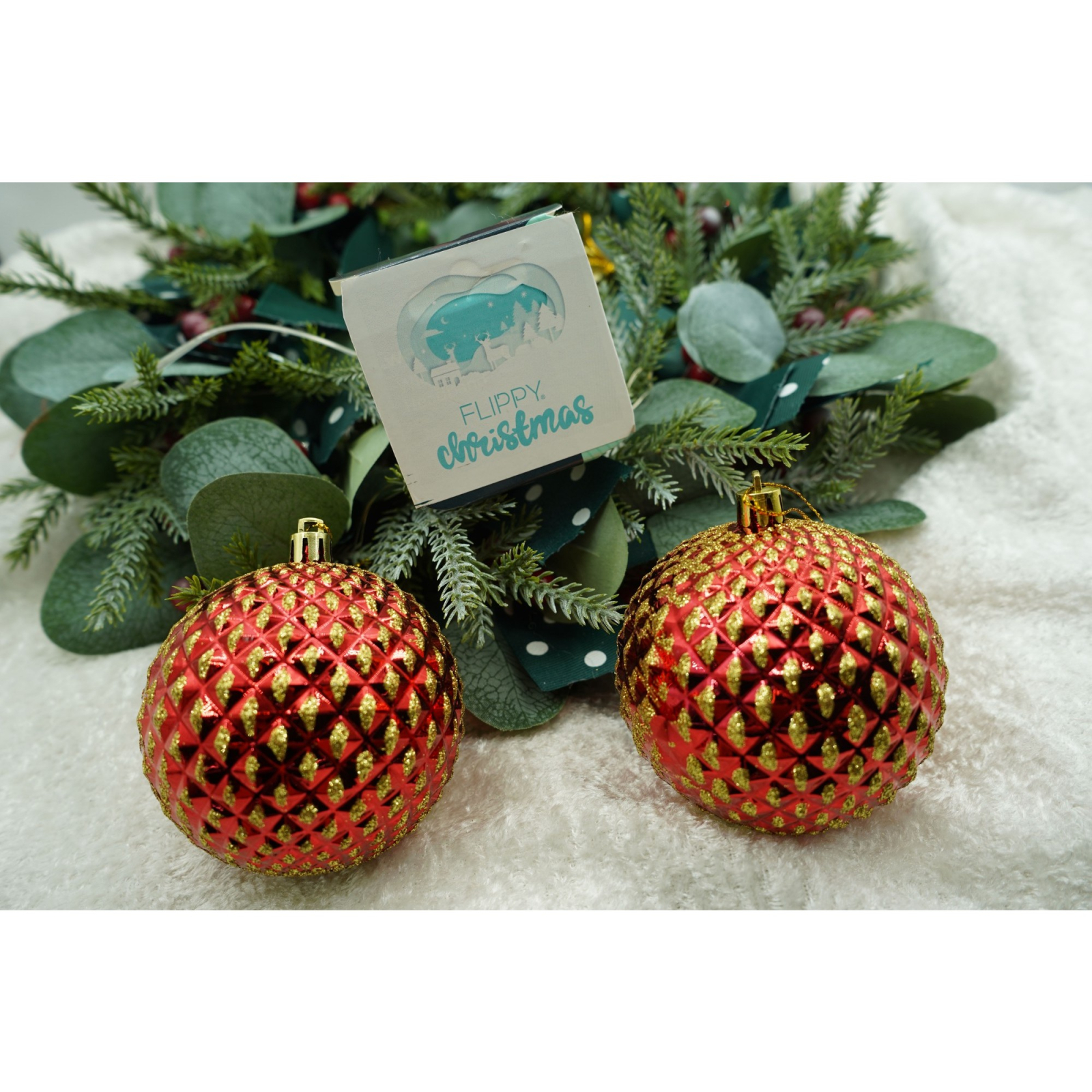 Set de 6 ornamente de brad, Flippy, de tip Glob, Rosu/ Auriu, cu ø de 8 cm, din plastic, cu finisaj sclipitor , cutie 24 cm inaltime x 16 cm lungime x 8 cm adancime