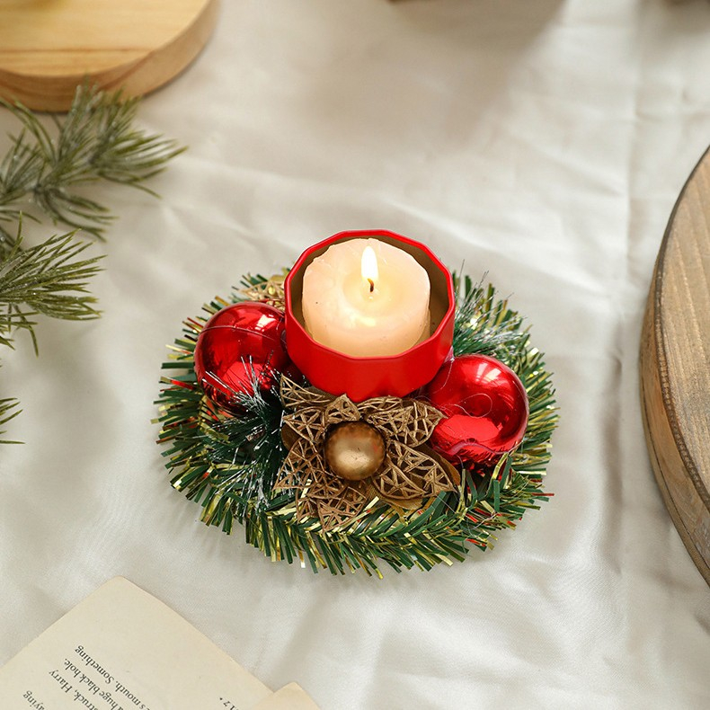 Suport pentru Lumanare de Craciun, Flippy, Model Cupa cu 2 Globutele Rosii, Sfesnic de Tip Ghirlanda, Decoratiune pe Masa de Craciun, 12 x 12 x 6 cm, Rosu
