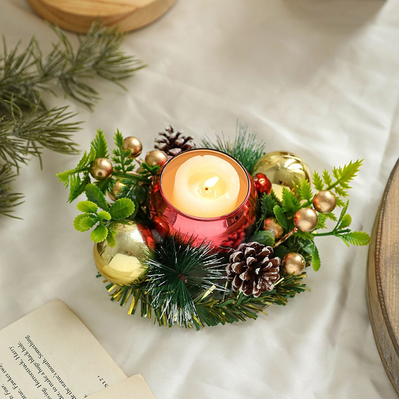 Suport pentru Lumanare de Craciun, Flippy, Model Glob pentru Brad 2 Conuri, Sfesnic de Tip Ghirlanda, Decoratiune pe Masa de Craciun, 12 x 12 x 6 cm, Rosu
