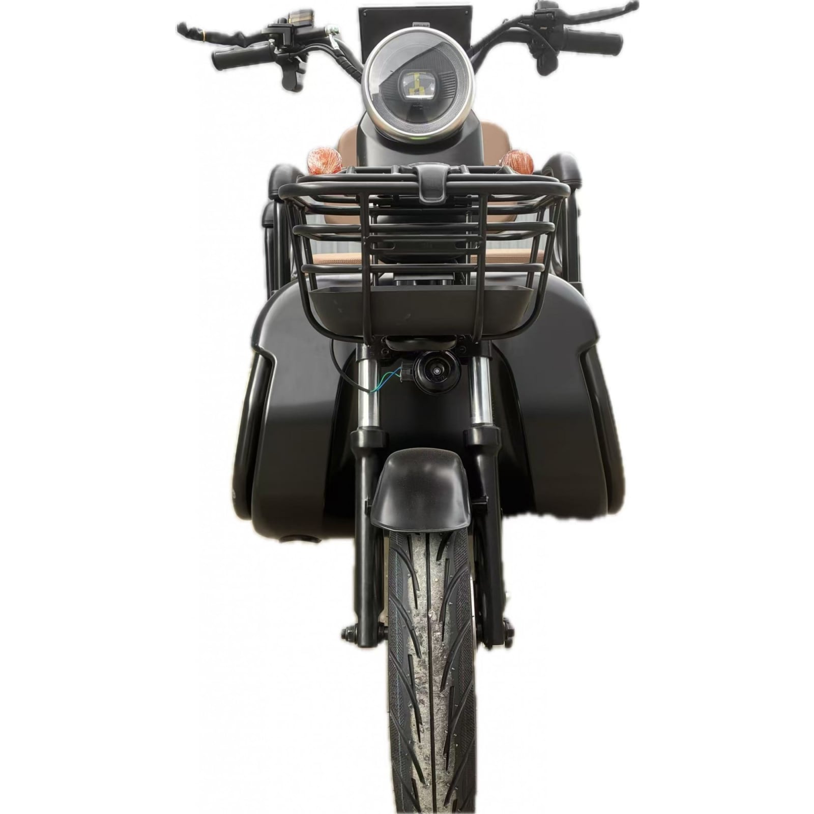 Triciclul Electric V6 Saige, negru, este alegerea ideala pentru cei care isi doresc un mijloc de transport rapid, sigur si economic, fara a face compromisuri asupra stilului si confortului.