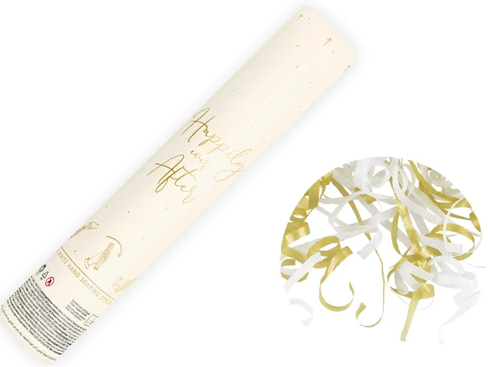 Tub manual cu serpentine, lungime aprox. 6 m, alb și auriu, lungime aprox. 25 cm.