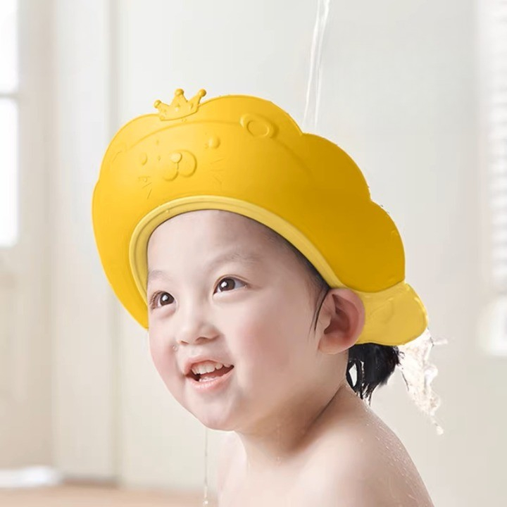 Viziera de Protectie Baie Pentru Copii, Fippy, Model Coronita Leu, Dimensiune ajustabila, Durabil, Usor de curatat, Impotriva Samponului, pentru Ochi si Urechi, TPE+PP, 21x20.5 cm, Galben