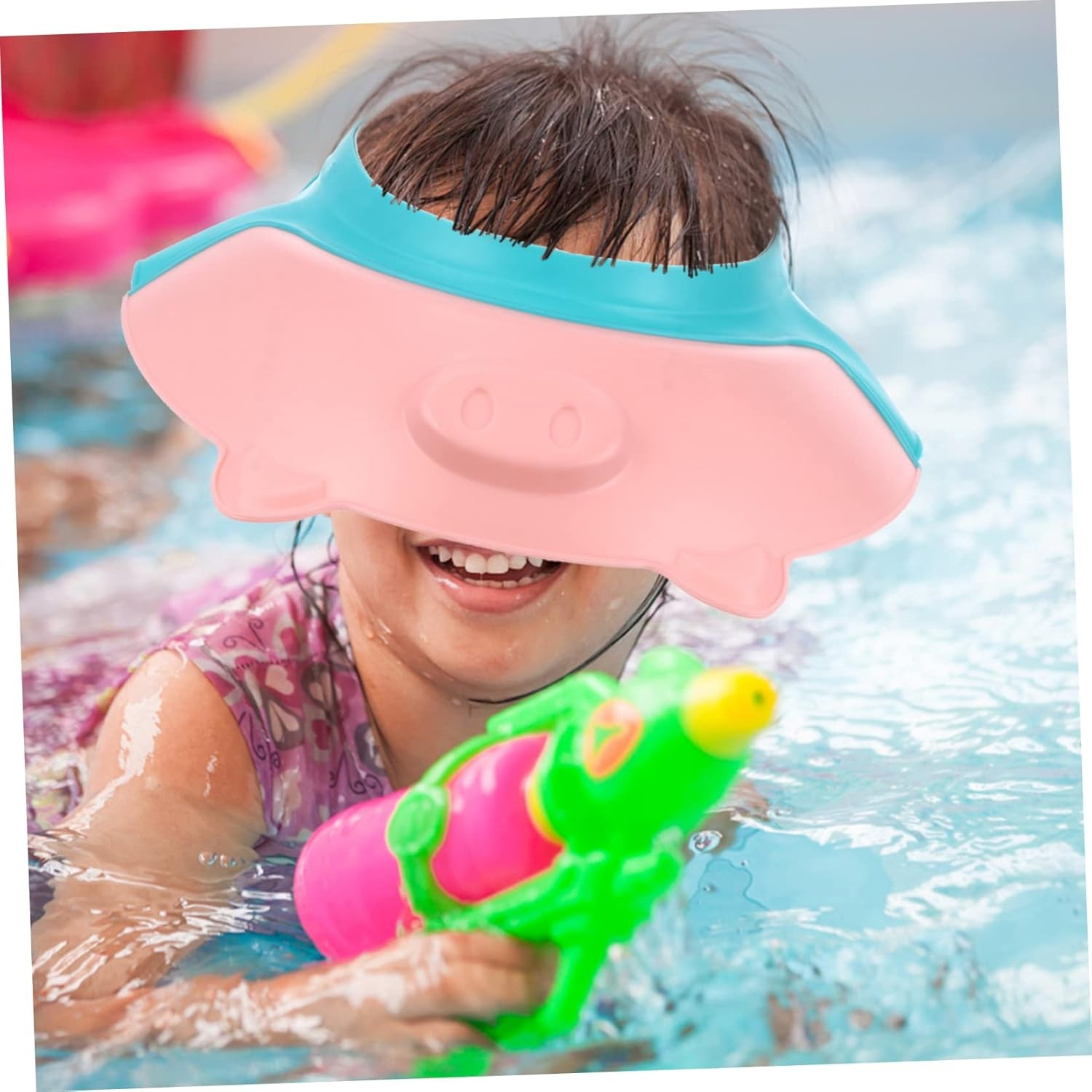 Viziera de Protectie Baie Pentru Copii, Fippy, Model Purcelus, Dimensiune ajustabila, Durabil, Usor de curatat, Impotriva Samponului, pentru Ochi si Urechi, TPE+PP, 23x23 cm, Roz